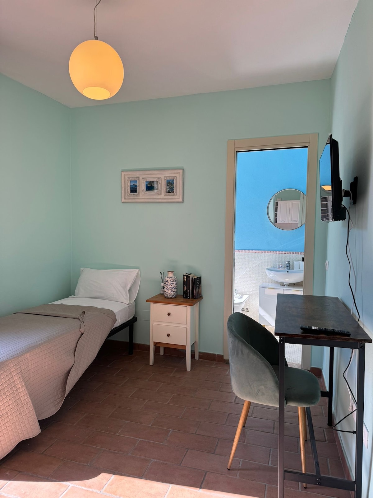 Delizioso monolocale di nuovissima realizzazione all’interno di un casale. L’appartamento è composto da una luminosa zona giorno con cucina a vista e tavolo da pranzo, divano letto (per due persone) e televisione, un ampio bagno con doccia a pioggia, servizi igienici e lavatrice. Il soffitto con travi a vista in legno sono il punto forte della casa e la rendono particolarmente affascinante.
