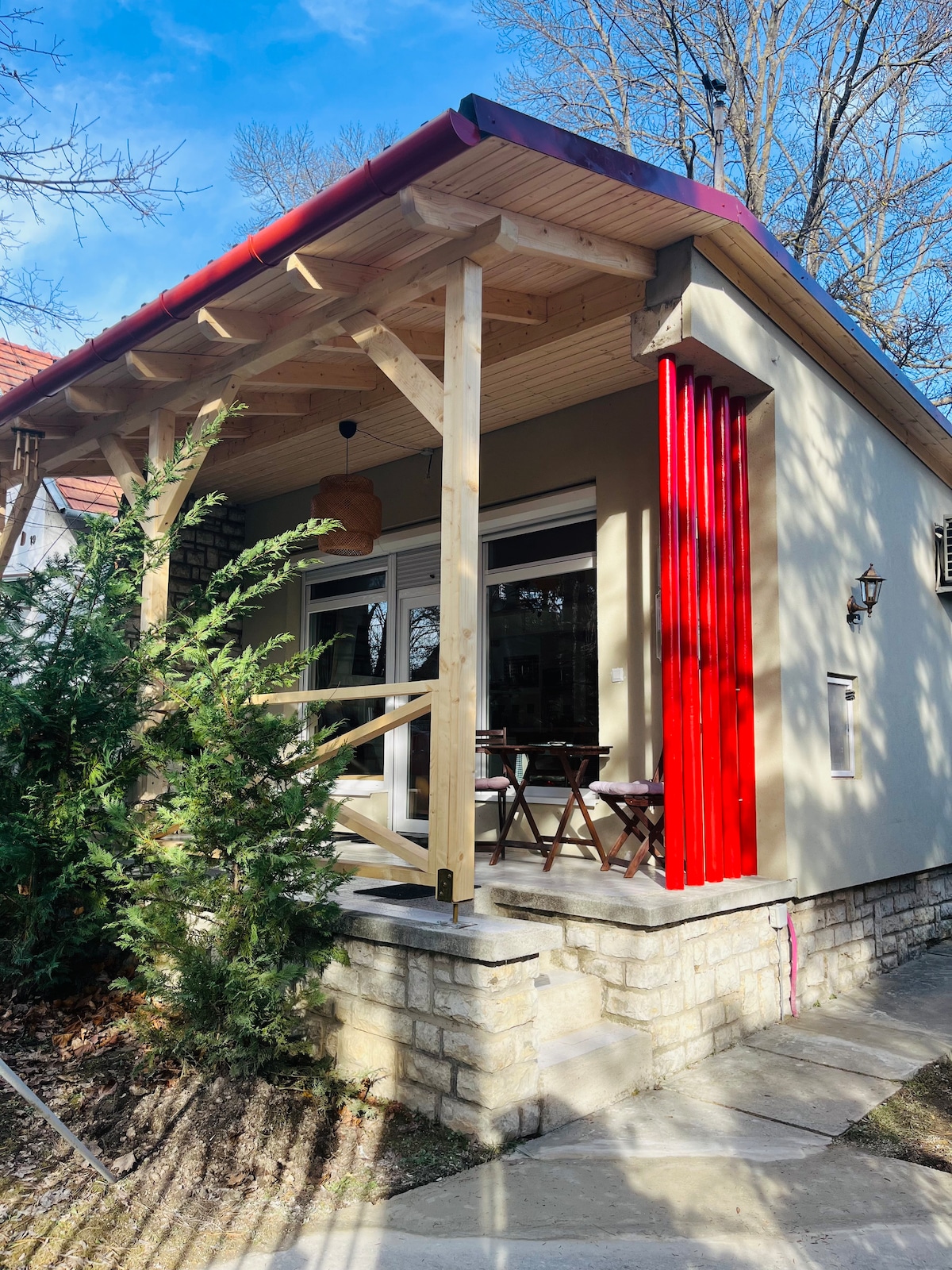 Ons pension ligt in het hart van de Balaton Uplands en wacht op je in een uitgestrekte, met vogelgezang gevulde tuin, waar rust, frisse lucht en volledige ontspanning gegarandeerd zijn. Verken de schilderachtige wandel- en fietspaden, luister naar de nabijgelegen beken of ervaar de magische geluiden van de herfstherten. De nabijheid van het Balatonmeer nodigt je uit voor een verfrissende duik of een zonovergoten middag, terwijl de smaken van lokale wijngaarden en charmante restaurants zorgen voor de perfecte afsluiting van je dag.