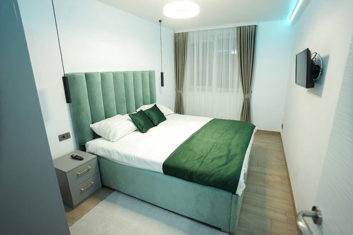Rose Apartment ligt in een nieuw blok, op 200 m van het centrum. Het appartement is van 2 slaapkamers, elk met echtelijk bed en een woonkamer met een hoek. De keuken is van alle gemakken voorzien, voorzien van een vaatwasser en inductiekookplaat, enz. De locatie heeft internet, Netflix-streamingdiensten, HBO MAX en Disney Plus en soundbar. Het appartement is voorzien van airconditioning. De hele groep zal genieten van gemakkelijke toegang tot alles wat een bezoek waard is, vanuit deze centraal gelegen woning.