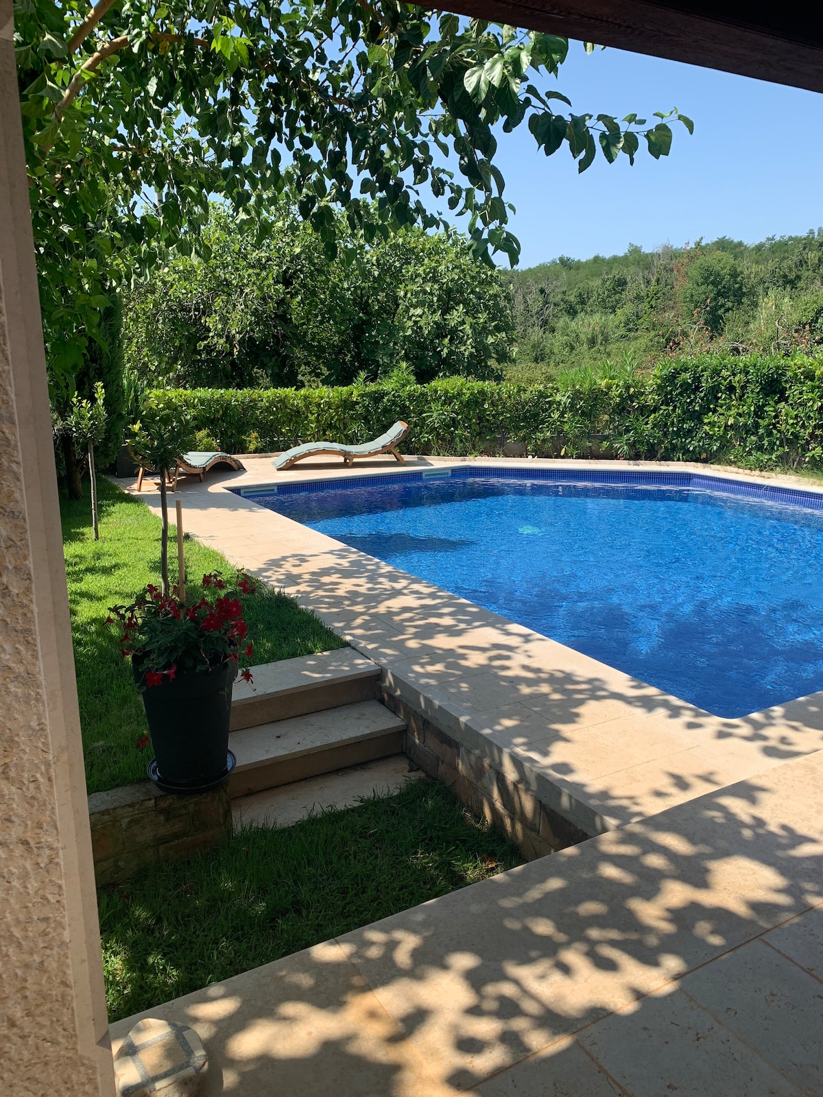 Welkom in het westen van Istrië, in een authentiek vrijstaand stenen huis uit 1850. Slechts 20 minuten rijden naar het strand en Poreč met UNESCO-erfgoed. Hilltop Motovun ligt op 10 minuten rijden, Višnjan, met een supermarkt, op 5 minuten afstand. Geniet van je eigen huis met 2 slaapkamers, volledig omheinde tuin, 2 airco's, zwembad, trampoline, BBQ, gratis parkeren en dineren in de buitenlucht. We respecteren je privacy en genieten van het delen van gastvrijheid, als je dat wilt. Mogelijk om wijn en olijfolie te kopen in het dorp of fietsen te lenen. Eén huisdier is gratis!