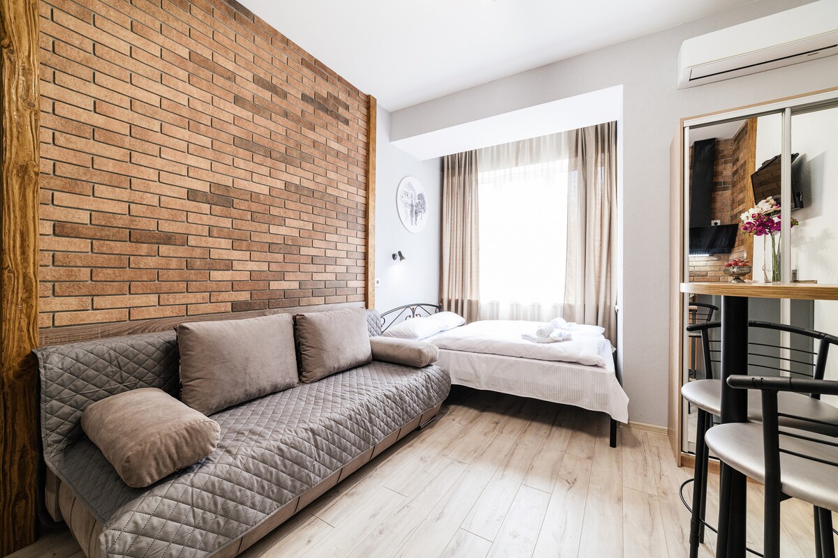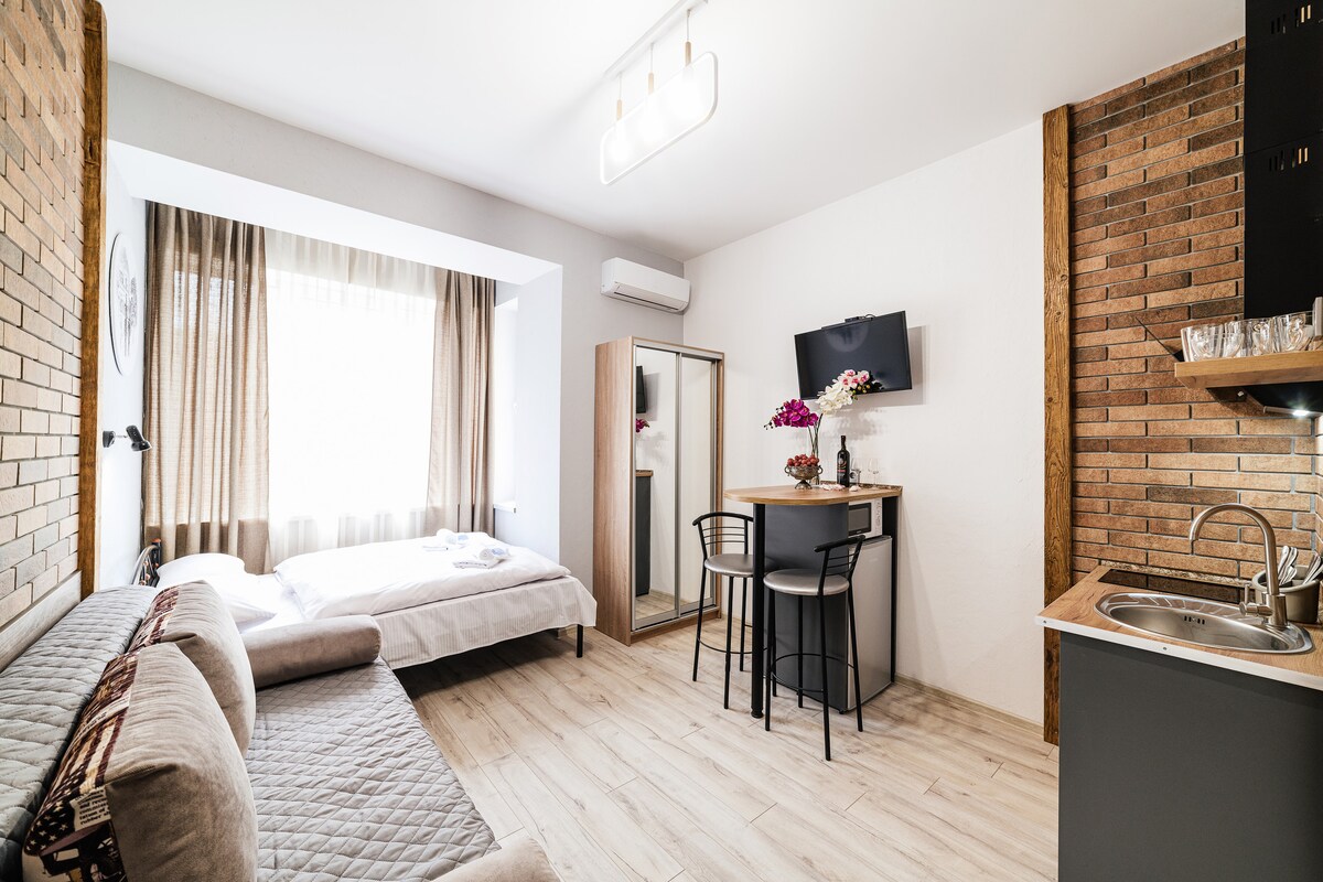 Ontspan en kom tot rust in een gezellige en stijlvolle plek in de buurt van Bozdos Park. De appartementen zijn uitgerust met alles wat nodig is voor een comfortabel verblijf van gezinnen met kinderen. Er is een wieg, kinderstoel, bordspellen, enz. Op het erf is er een kinderspeeltuin, in de buurt koffiebars, winkels, apotheek, bankfiliaal.