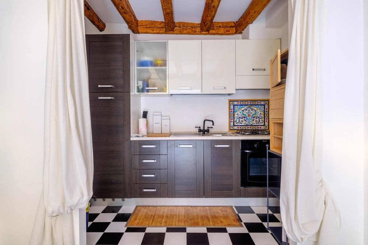 Met uitzicht op de ramen en je zult niet het gevoel hebben dat je in zo 'n bevoorrechte positie tussen de grachten en gondels leeft. Het appartement, met zijn strakke lijnen en de prachtige balken van het plafond, zal je veroveren. Het appartement heeft een unieke locatie, zeer centraal, maar ook erg rustig en stil. In de omgeving zijn supermarkten, bars, restaurants en alle belangrijke toeristische bezienswaardigheden, zoals Piazza San Marco en Palazzo Ducale.