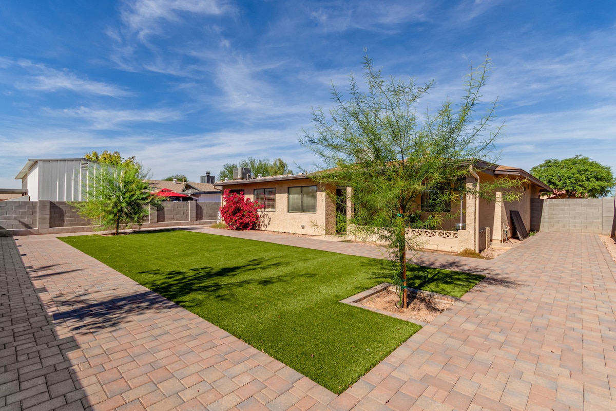 *Lees DE volledige beschrijving voordat JE reserveert* Gezellig en rustig studioverblijf ligt op loopafstand van Priceless Too Sportsbar, Fry 's Grocery en Mesa Marlborough Park. Deze suite biedt een eigen ingang, een badkamer in spa-stijl en toegang tot een wasmachine/droger, evenals een patio in de achtertuin en vuurplaats. We kijken ernaar uit je binnenkort te mogen verwelkomen en kunnen aanbevelingen doen op basis van waar je naar op zoek bent!