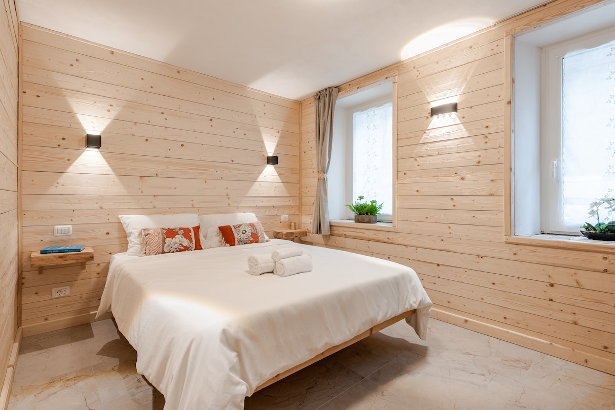 Mini-huis omgeven door het groen van de minigolfbaan Valbruna. Het kleine huis is het tweede op een kleine heuvel. Binnen vind je een tweepersoonsbed, koelkast, elektrische koffiepot, broodrooster, magnetron, waterkoker en koffie, snacks, brood voor toast, jam. In de badkamer douche, wastafel en toilet met ingebouwd bidet. Laat het me weten als je laat in de winter aankomt, zodat we vroeg kunnen opstaan. de verwarming.