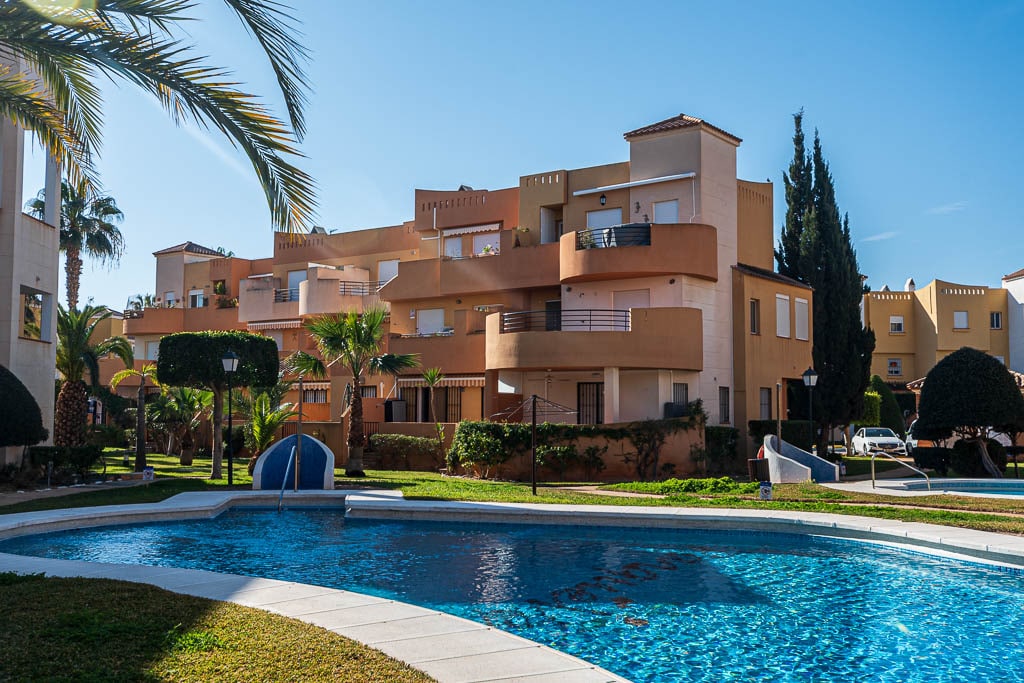 Residencial muy silencioso, con piscina y plaza de garaje, 2 habitaciones con cama de matrimonio, cuarto de baño con bañera y aseo con plato de ducha, cocina completa y salón comedor. Terraza con mesa y sillas, y lo mejor para el final... una terraza solárium, con zona chill-out, hamacas y pergola! Para pasar unos atardeceres inolvidables... Un apartamento con gusto y todos los detalles, cerca de la playa y chiringuitos. Pueblos turísticos a 4 min ,calas y playas virgenes cercanas