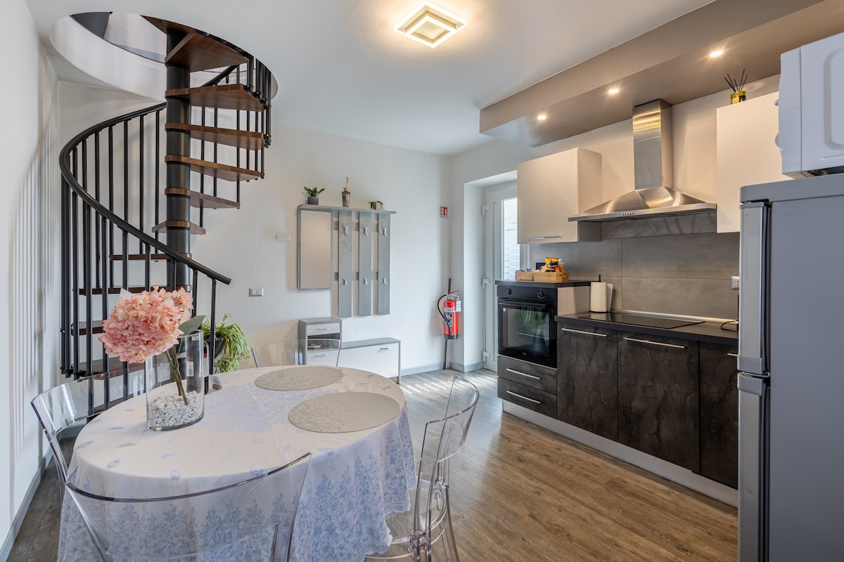 Buitengewone loft van 100 m ² in het hart van Omegna, op een toplocatie op een steenworp afstand van het meer van Orta en dicht bij het station en de bushaltes. Smaakvol ingericht en van alle gemakken voorzien: volledig uitgeruste keuken, Smart TV met Netflix, wifi, welkomstpakket en handdoeken. Een van de sterke punten is een ruim privéterras, perfect voor ontspannende momenten, compleet met ligstoelen, een tafel en stoelen. Een gezellige open haard in de woonkamer zorgt voor de perfecte sfeer voor koude winterdagen.