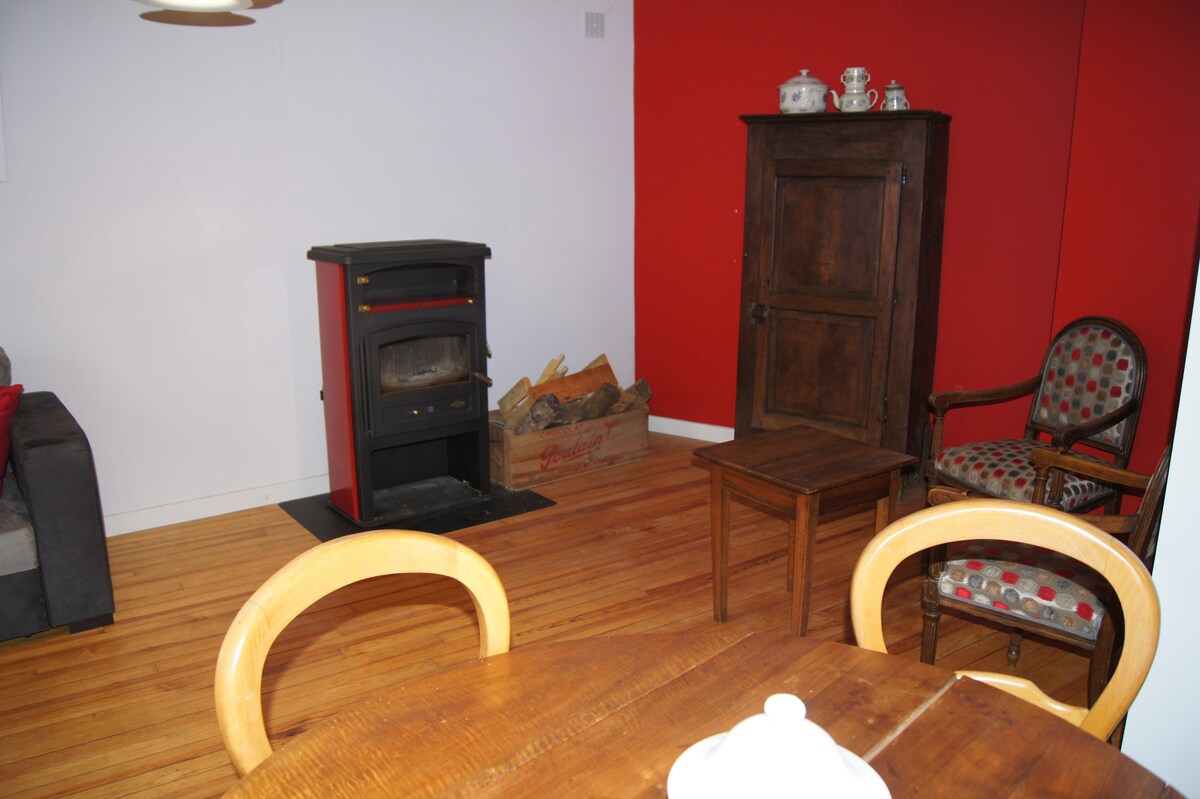 NIEUW: LoveRoom L’Antre d 'Eux, huis 80m2 - 5 minuten van Issoire Bestaande uit: - Volledig uitgeruste keuken - Romantische kamer cocooning bed 160x200 -Balneo bad SPARUIMTE, inloopdouche, sauna -WC - Filmkamer met slaapbank - Binnentuin aan de buitenkant Koffie, thee, aangeboden op het terrein! Eigen parkeerplaats, rustige omgeving Restaurants bij jou in de buurt Inchecken om 17.00 uur uitchecken de volgende dag 11.00 uur Sleutelkastje Schoonmaken op onze kosten