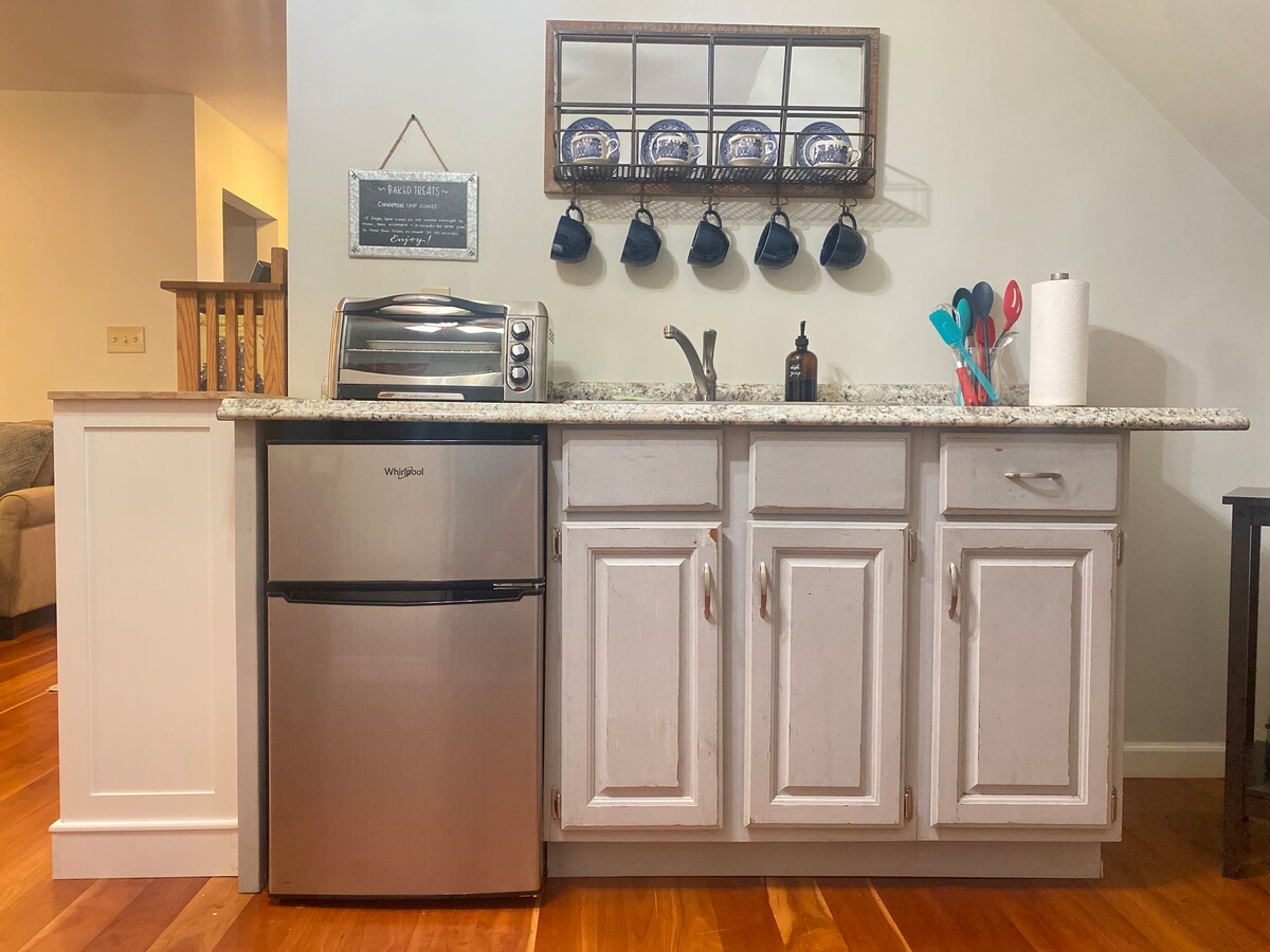 Gezellig studio-appartement in een rustige, bosrijke omgeving in Tolland, CT – op slechts enkele minuten van de I-84 en op 15 minuten van UConn. Geschikt voor 2–4 personen met een queensize bed en een optionele matras. Inclusief volledig uitgeruste keuken, badkamer, snelle wifi, eigen ingang en eenvoudig zelf inchecken. Gratis Level 2-oplaadpunt voor elektrische auto's en voldoende parkeergelegenheid. Ideaal voor kort of langer verblijf. Geen huisdieren, niet roken, geen feesten.
