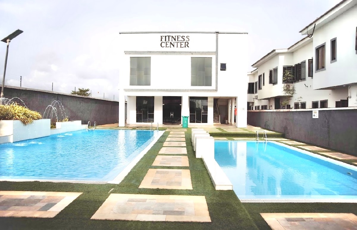 Doe rustig aan in dit unieke en rustige uitje. Dit elegante gloednieuwe luxe huis heeft een eigen stijl. Het is gelegen in het hartje Lekki met 5-sterrenvoorzieningen. Het huis ligt in een 24/7 beveiligd landgoed en een privéhuisbewaarder om aan je schoonmaakbehoeften te voldoen als dat nodig is. Het huis is zeer ruim, en is voorzien van voorzieningen zoals ; 24/7 Elektriciteit, Gedeeld Zwembad, Airconditioning, 6 Smart TV, SmartLock, Semi-Orthopedic Matrassen, DSTV & Ingebouwde Luidsprekers.