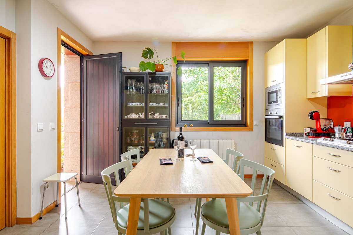 Ontsnap aan de routine in een uniek en ontspannend verblijf, gebouwd met natuurlijke materialen, de locatie van dit chalet maakt het een droomplek om batterijen op te laden, op slechts 1,5 km van het centrum van Vila Nova de Cerveira. Buiten heeft het een groot terras van 120 m² voor blootstelling aan de zon en toegang tot het zwembad, een overdekte barbecue met barbecue, houtoven en tafel voor 8 personen. Een grote keuken met verbinding met de eet-/woonkamer met een prachtig uitzicht op de rivier de Minho en Spanje.