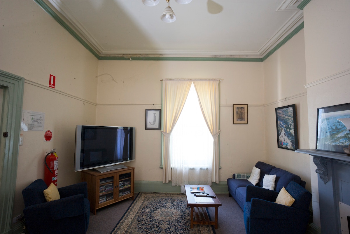 ALLEEN VOOR VROUWEN. Verblijf in een stukje geschiedenis met een bed in ons historische en op de erfgoedlijst geplaatste koetshuis dat zorgvuldig is omgebouwd tot een gezellige slaapzaal voor alleen vrouwen (ALLEEN VOOR VROUWEN). Deze comfortabele kamer beschikt over vier stapelbedden (let op: specifieke bedden kunnen niet worden gereserveerd omdat gasten op verschillende dagen aankomen en vertrekken). Beddengoed is aanwezig, maar neem je eigen handdoek mee (handdoekverhuur bij de receptie is $ 5). Gedeelde badkamerfaciliteiten bevinden zich buiten de kamer.