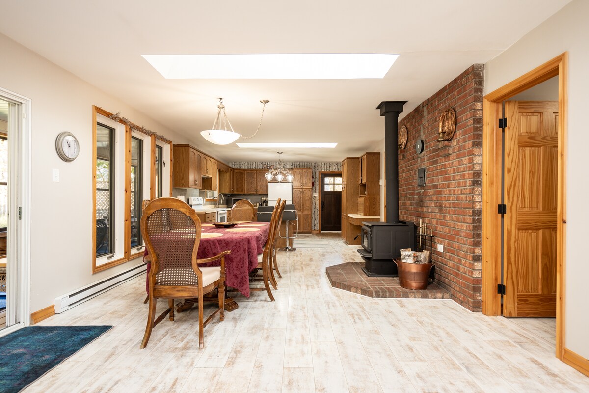 Mooi Cedar House met uitzicht op Elk Island -3 slaapkamers met uitzicht op het meer! Het hele jaar door huis zorgt voor koeling in de zomer en warmte in de winter met houtkachel en elektrische warmte. Het huis heeft natuurlijke hemellichten en een zeer grote eet- en keukenruimte die geweldig is om te entertainen. Woonkamer met erker & openslaande deuren voor privacy en een slaapgedeelte. Trap naar het meer naar een eigen kustlijn met uitzicht op het Eland. Enorme veranda & 2 futonbedden. Bubbelbad -werkend vanaf april - november - buitendouche