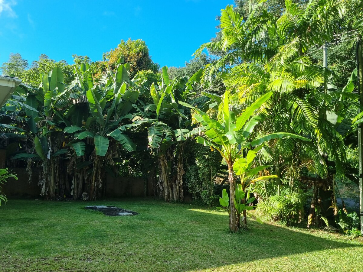 Welkom bij Effie 's Mountain View Villas! Omgeven door een prachtige tropische tuin ligt deze charmante accommodatie met eigen kookgelegenheid aan de oostkust van Mahé, in Le Rocher. Dit paradijselijke landgoed biedt een gemeubileerd terras dat ideaal is om in alle rust te ontspannen. Ondertussen is de centrale locatie tussen de luchthaven en de hoofdstad Victoria ideaal.