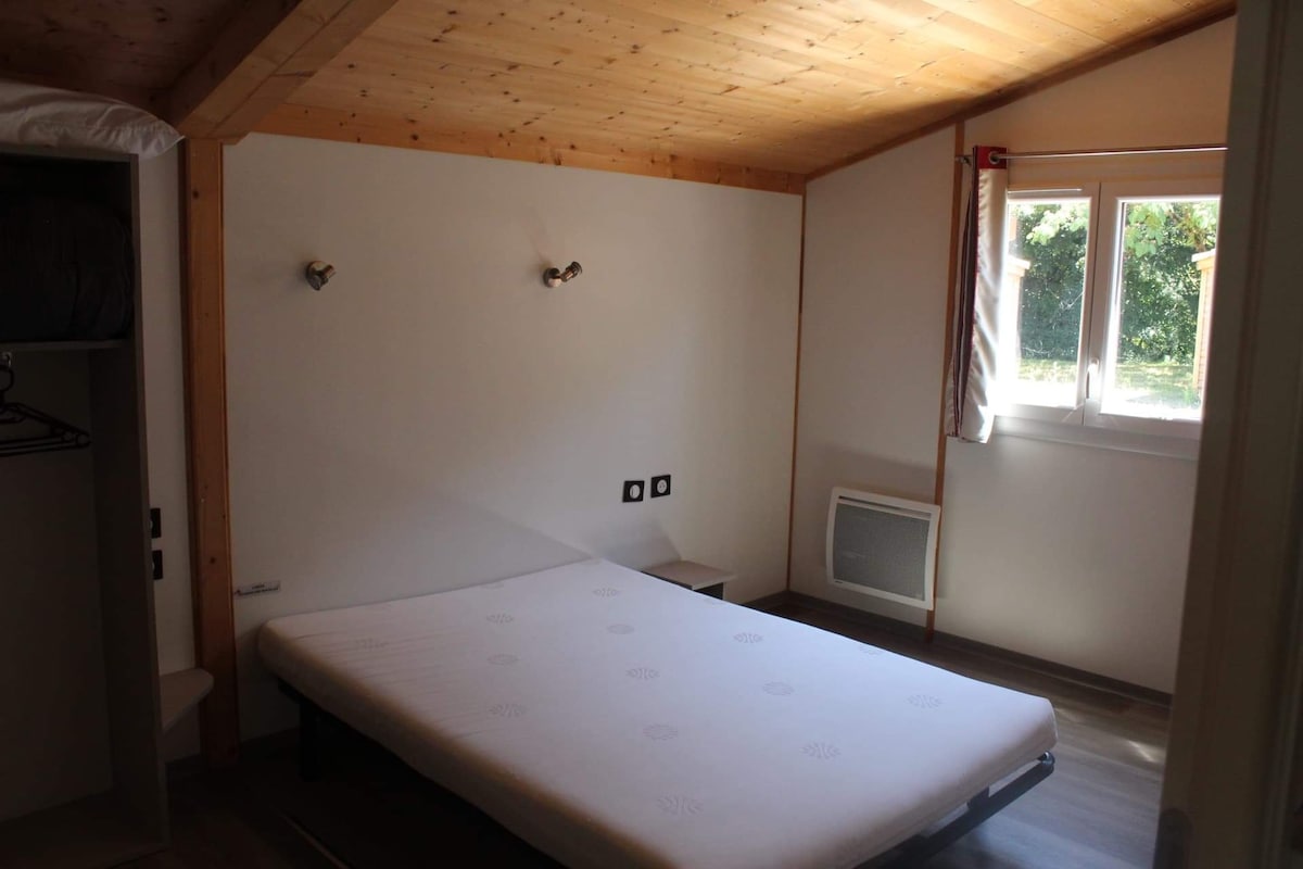 In een bosrijke omgeving zijn de "cocoon" chalets met houten interieur, alle comfort, geschikt voor je gezin tot 8 personen. Gelegen onder de pijnbomen, geniet van de rustige en ontspannen sfeer van onze chalets. Het Shetland-huisje is toegankelijk voor mensen met beperkte mobiliteit.