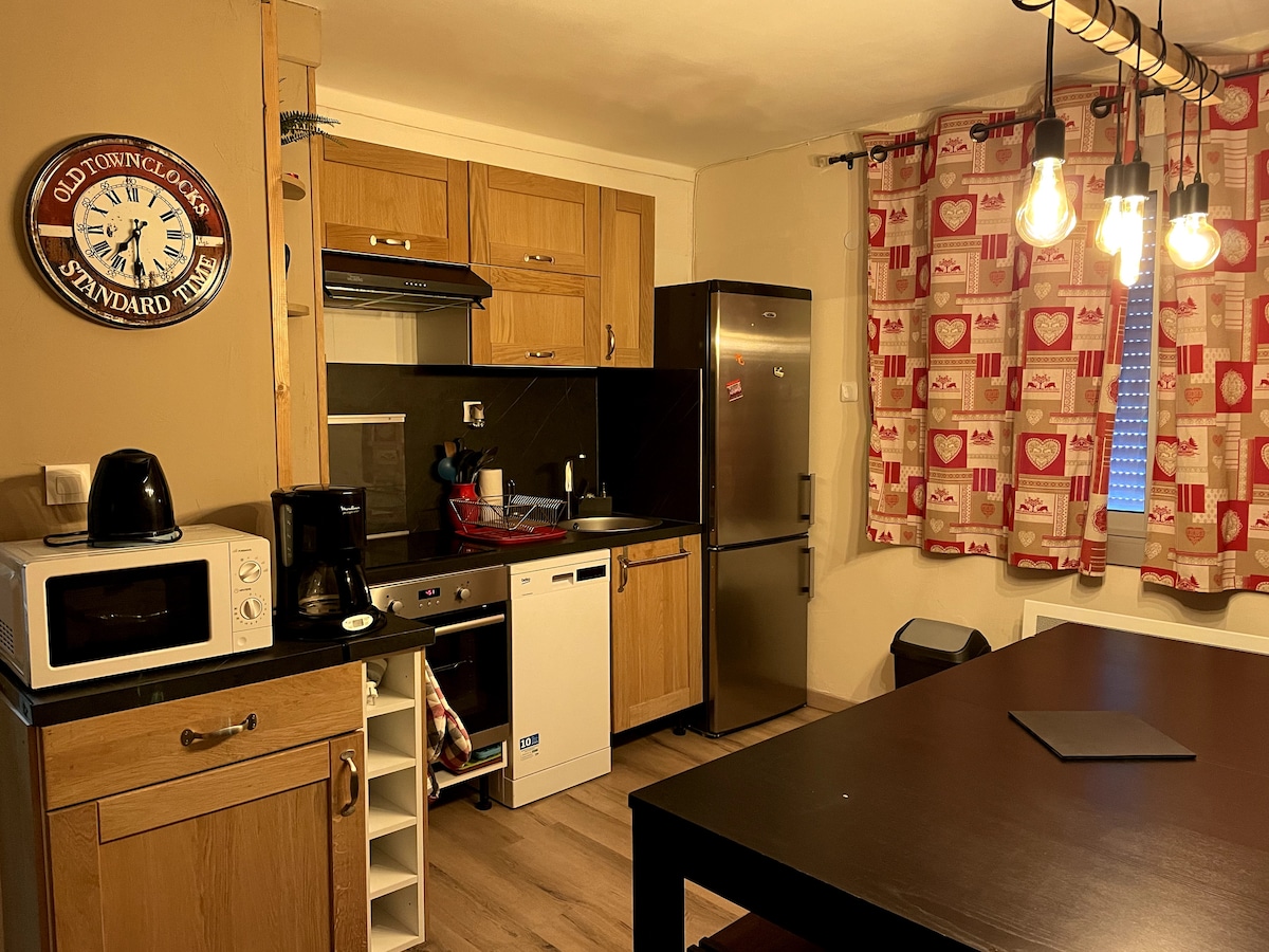 5 mm lopen naar de kabelbaan en het stadscentrum Eigen parkeerplaats, lokale ski- en fietskamer 1 slaapkamer, 1 woonkamer met volledige keuken en bank 1 grote entree met 2 bedden van 90 cm Badkamer en aparte poederkamer TV, Nespresso, filterkoffiezetapparaat, broodrooster, waterkoker Linnengoed niet verstrekt Shuttlestop voor eieren voor de woning Wekelijkse verhuur tijdens de schoolvakanties (alleen in de winter). Schoonmaak te doen aan het einde van het verblijf door de huurder