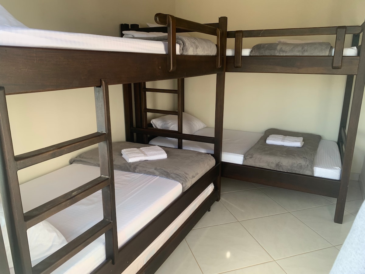 Geniet maximaal van een ontspanningsruimte voor het hele gezin, rustig en comfortabel, met een capaciteit voor 12 personen, met aangename gemeenschappelijke ruimtes zoals een zwembad voor volwassenen en kinderen, restaurant, tennisbanen, volleybal, basketbal, synthetisch voetbalveld, fitnessruimte, speeltuin en op slechts 10 minuten van de prachtige gemeente Vierbo - Caldas.