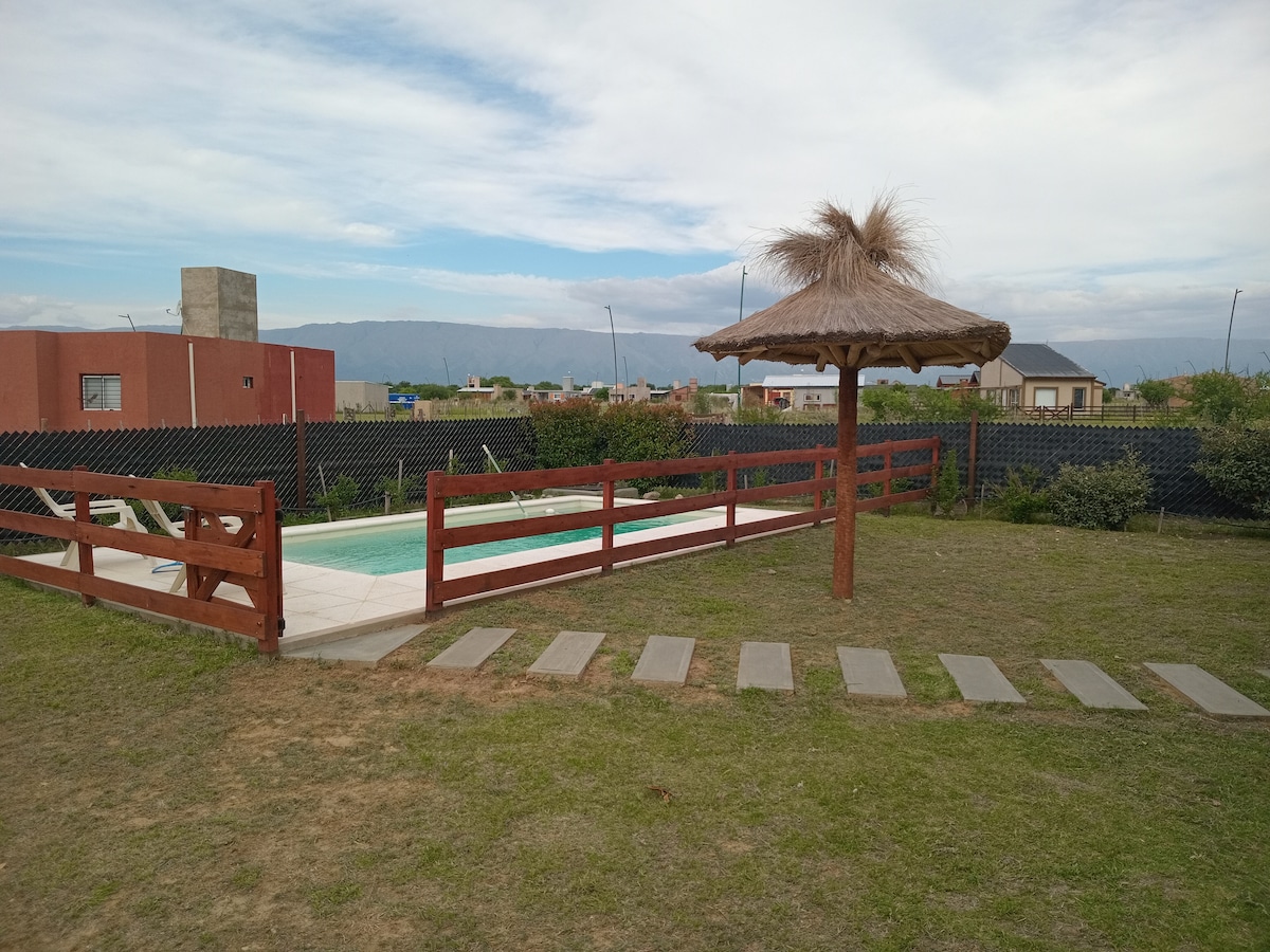 Huis met exclusief zwembad in Country "Las Cascadas", aan de voet van de Sierras Comechingones, in de stad Carpintería, 30 blokken van de provinciale route 1 en 5 minuten rijden van Merlo. Het huis heeft een complete keuken, een grote eetkamer en een woonkamer met fauteuils naast een houtgestookte woning. Het heeft 3 kamers: een en-suite met een tweepersoonsbed en 2 c/ twee sommiers c/u en ruime pleinen. Comfortabele 2e complete badkamer met voorbadkamer. Tuin. 8x4 mt. zwembad w/w/ ik ben op zoek naar een perimeter. Galerie met grill