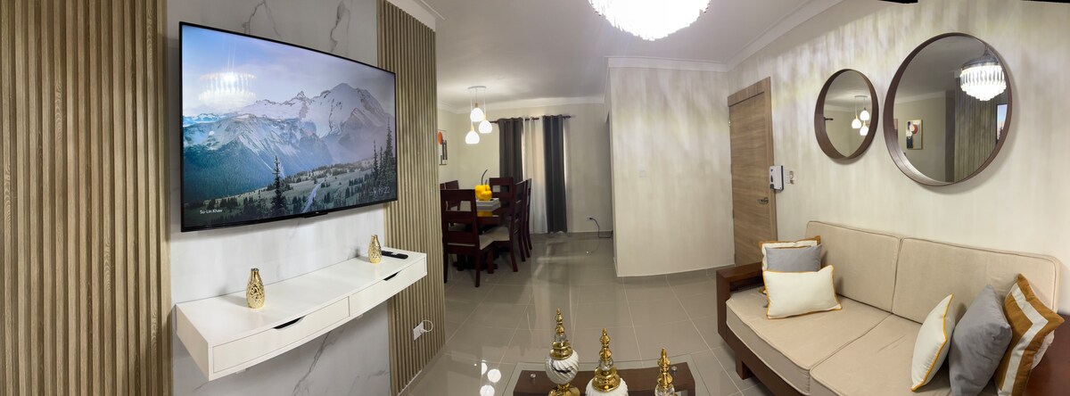 Ontspan met het hele gezin op deze plek waar rust, warmte en harmonie kunnen worden geademd. Geniet van dit gezellige appartement en comfortabele 2 slaapkamer hoofdaccommodatie met airconditioning en tv, plafondventilator, woonkamer met tv, eetkamer, uitgeruste keuken, wifi, warm water, schermen op alle ramen en zebragordijnen. - 25 minuten van de internationale luchthaven Cibao - 5 minuten van het centrum van Moca - 5 minuten van het ziekenhuis en winkelcentra.