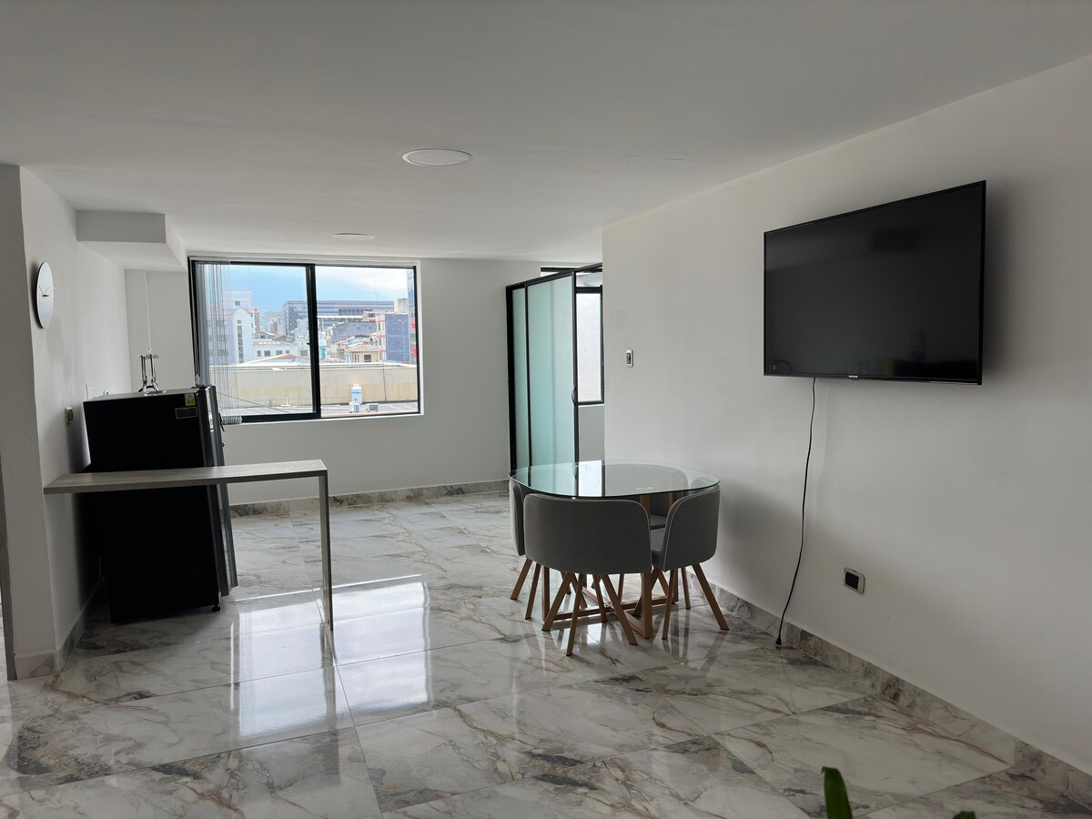 Welkom bij je elegante ontsnapping in het hart van Manizales! Geniet van ons moderne appartement, op slechts vijf minuten van het Monumental Plaza de Toros, op een steenworp afstand van het Plaza Bolívar, de kathedraal en het gouvernement. Met 2 slaapkamers (1 tweepersoonsbed en 2 semi-dubbele bedden), slaapbank, smart-tv en volledig uitgeruste keuken. In de omgeving vind je restaurantjes, parkeerplaatsen, winkels, banken en meer. Ideaal voor het verkennen van Manizales en een onvergetelijk verblijf!