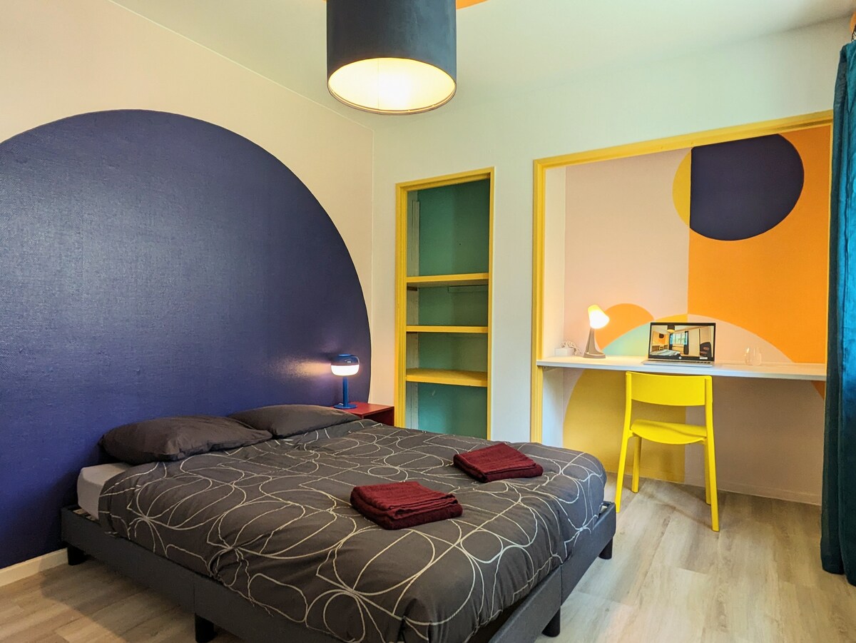 🌈 Dompel jezelf onder in een wervelwind van kleur in Saint-Étienne! 🌈 ▶️Color Addict ◀️ 47m², op slechts 5 minuten lopen van het beroemde Cité du Design, is een explosie van visuele creativiteit. Elk hoekje van deze ruimte is ontworpen voor een unieke ervaring waar design en kleur samenkomen om je te vervoeren naar een wereld waar kleur koning is. ☀️ 🎨Met een tweepersoonsslaapkamer en een slaapbank biedt onze accommodatie een kleurrijk toevluchtsoord voor reizigers die op zoek zijn naar originaliteit. 🌈🔝