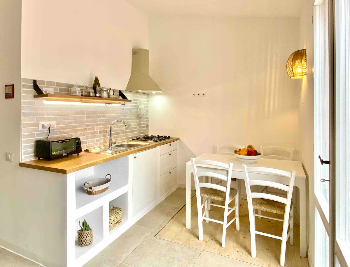 Nieuwe flat van 30 vierkante meter, met een groot terras, uitgerust met tafel en stoelen om buiten te ontspannen. Hier kun je jezelf verliezen in een adembenemend uitzicht op zee! De flat ligt op een heuvel midden in de natuur en is ingericht in een functionele en mediterrane stijl; het bestaat uit een tweepersoonsslaapkamersuite, een complete keuken, een badkamer en een terras. Vanaf hier kunt u genieten van de rust en stilte van de plaats en de mooiste stranden aan de kust in ongeveer tien minuten met de auto bereiken.