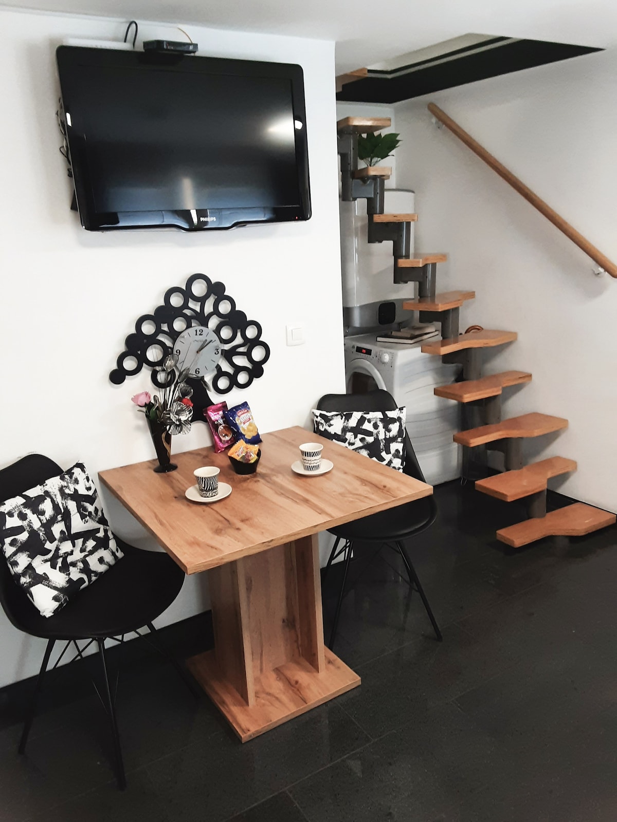 Wij bieden je een prachtig appartement in een rustiger Bled voorstedelijk gebied. Het heeft een mooie houten structuur gecombineerd met een aantal moderne elementen die appartement een warme, gastvrije plek maken. Aan de voorzijde een mooi terras met druiven. Naast het appartement is een geweldige fitnessruimte met veel leuke dingen voor kinderen, ook met een set apparatuur voor een training als je een sportman bent. We hebben een grote parkeerplaats voor onze gasten voor het huis. Wij bieden kortingen aan.