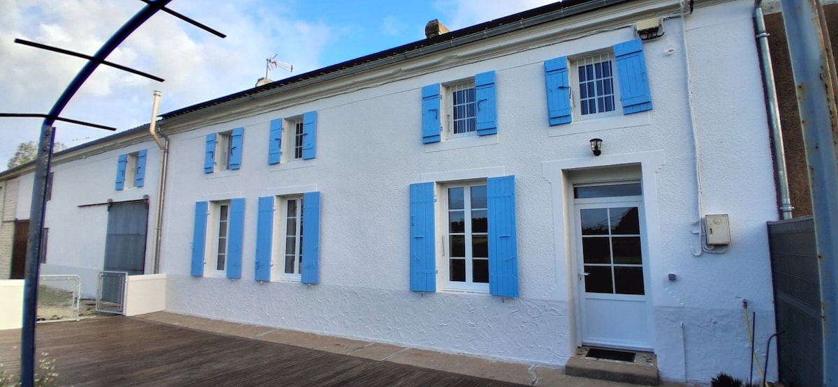 Charente huis gerenoveerd 2019 in wijnproducerend pand, pineau, cognac. Het huis ligt op 100 m van de Nationa 141 hoofdas Saintes Cognac. De Charente om te vissen 1,5 km, greenway flowvélo toegang in de zomer met de kettingveerboot om de Charente over te steken Village classificeer steen en wijwater besparen, paleosite5 km,boomklimmen ablaye de Fontdouce 7 km heilige Gallo-Romeinse stad,Cognac bezoek van de grote huizen van geesten Badplaats 55 km Mescher en Royan, La Rochelle 70 km