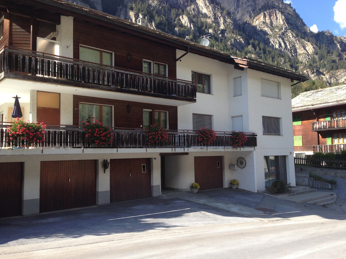 Wij, een gezin met een kind, hond, katten en paarden, huren een gezellige studio op de begane grond van ons huis in ST NIKLAUS (NIET GELEGEN IN ZERMATT!!!) Inchecken vanaf 15.00 uur!! Eigen ingang op de begane grond van het huis, incl. Parkeren en tuinstoelen - landelijke omgeving. 20 minuten LOPEN van station St Niklaus (omhoog en omlaag - zie in ons profiel!) GEEN TAXI OF BUS VANAF HET STATION!! Verboden te roken!