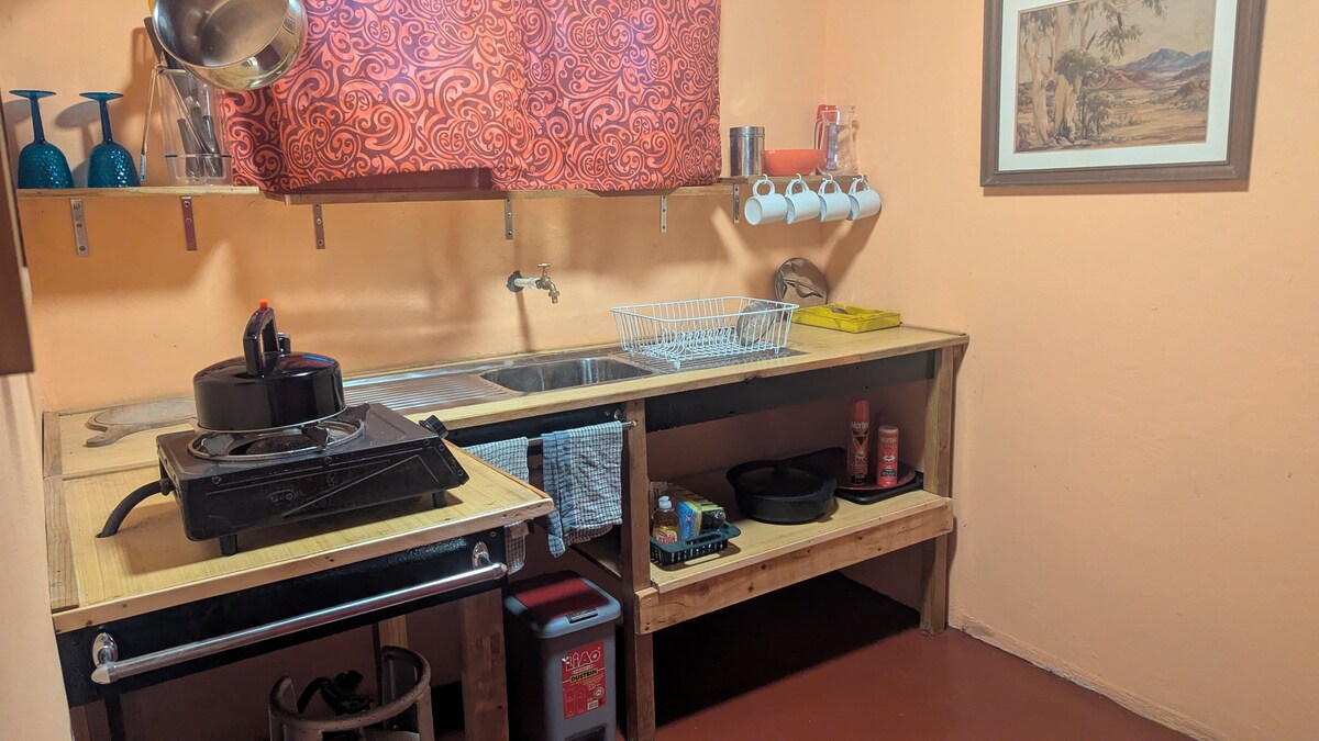 Een modern en gezellig huis met alles wat je nodig hebt voor een comfortabel verblijf. De ruimte beschikt over een lichte woonkamer met een bank en tv, een volledig uitgeruste keuken met een koelkast, fornuis en magnetron, plus een eethoek voor gedeelde maaltijden. Airconditioning houdt de woning koel en grote ramen zorgen voor veel licht. Perfect voor koppels, soloreizigers of kleine groepen die op zoek zijn naar een schone en ontspannen plek om te verblijven.