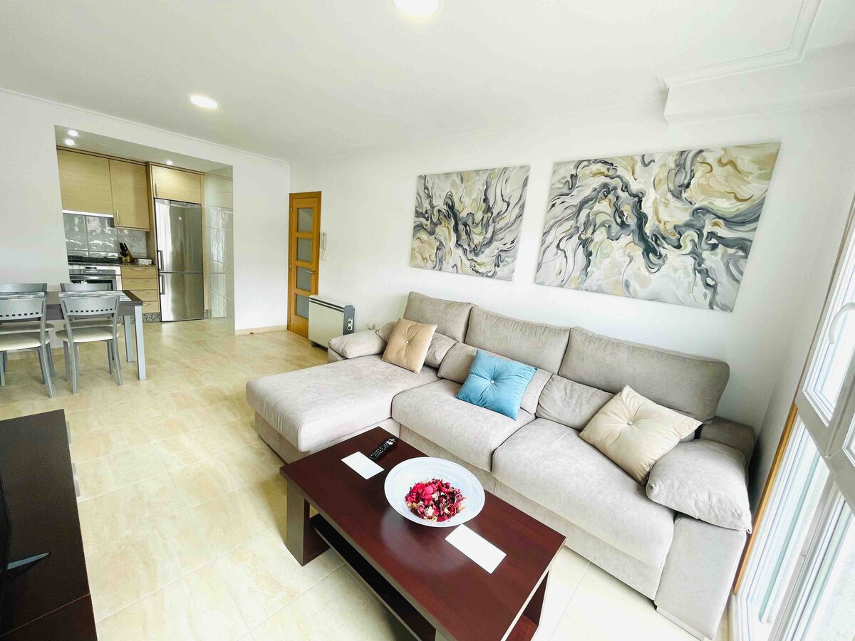 Groot en zeer licht appartement uitgerust met 3 slaapkamers , 2 volledige badkamers, keuken ingericht in natuurlijk eiken en woonkamer. Volledig ingericht, keukengerei, koffiezetapparaat, bed- en badsets, tv, apparaten, medicijnkastje, schoonmaakspullen en twee inbouwkasten in de ingang en de gang.