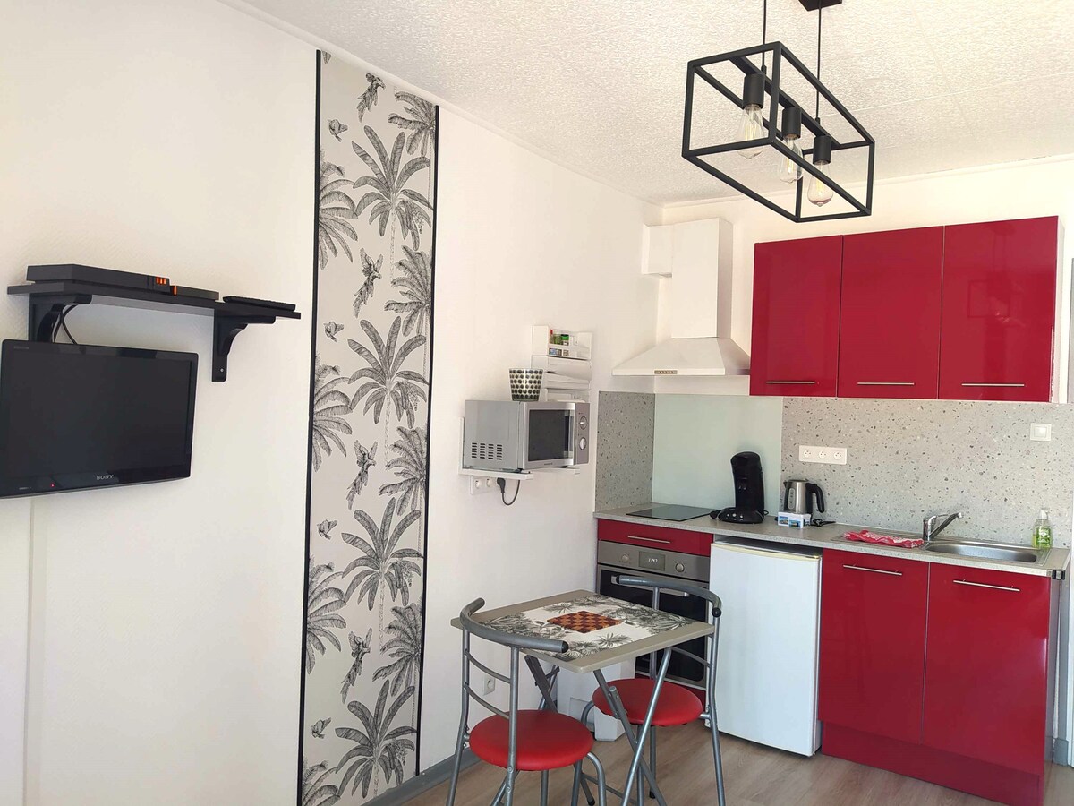 Licht ingerichte studio van 32m2 met airconditioning in het hart van Le Boulou, dicht bij alle voorzieningen. Elektrische rolluiken en dubbele beglazing. Gratis wifi, glasvezel. Verschillende gratis openbare parkeerplaatsen, op vier minuten lopen van het appartement. Gelegen tussen de zee en de berg, wachten prachtige wandelingen op je (historische site van de slag bij Boulou...) 15 minuten van Spanje, Perpignan, Argelés-sur mer en Céret. Dicht bij de thermale kuren, het Casino en het gemeentelijke zwembad.
