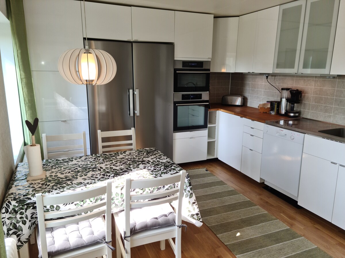 Appartement in een rustige woonwijk, centraal gelegen in Sundsvall met een eigen patio en parkeerplaats. Dicht bij goede communicatie met zowel bussen als treinen. Open plan met comfortabel tweepersoonsbed en een goede slaapbank voor 1-2 extra bedden (beddengoed+handdoeken inbegrepen). Eigen toilet en douche en wasmachine met ingebouwde droger. Volledig uitgeruste keuken met koelkast, vriezer, fornuis, oven, koffiezetapparaat, waterkoker en magnetron. Uitstekend geschikt voor 1-3 volwassenen of 2 volwassenen en 2 kinderen. TV met ChromeCast is beschikbaar.