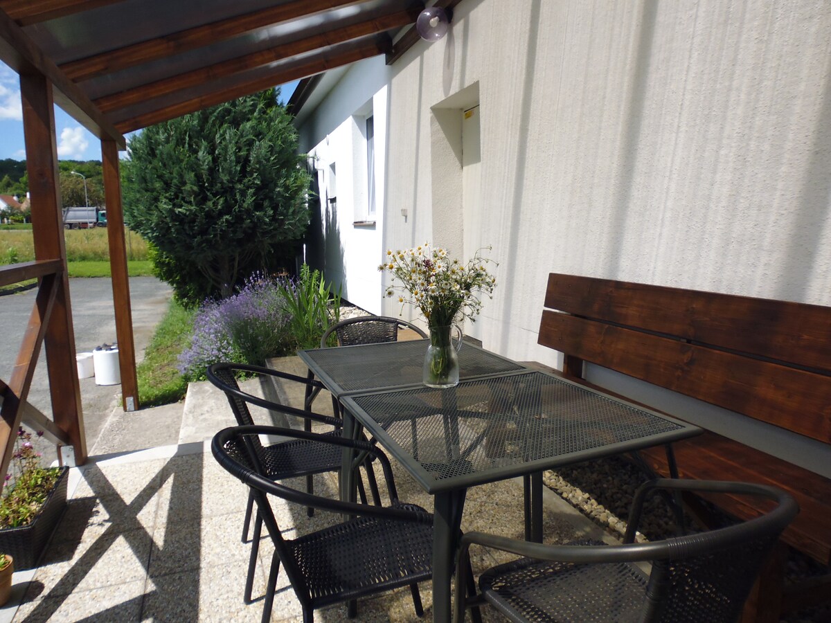 Apartmán se nachází v obci Moravská Nová Ves a je ideálním výchozím bodem k výletům do okolí. Apartmán je moderně zařízený nábytkem ze dřeva a s možností vstupu na prostorný dvůr, kde umocníte Váš pobyt na čerstvém vzduchu s možností posezení u kávy či grilování