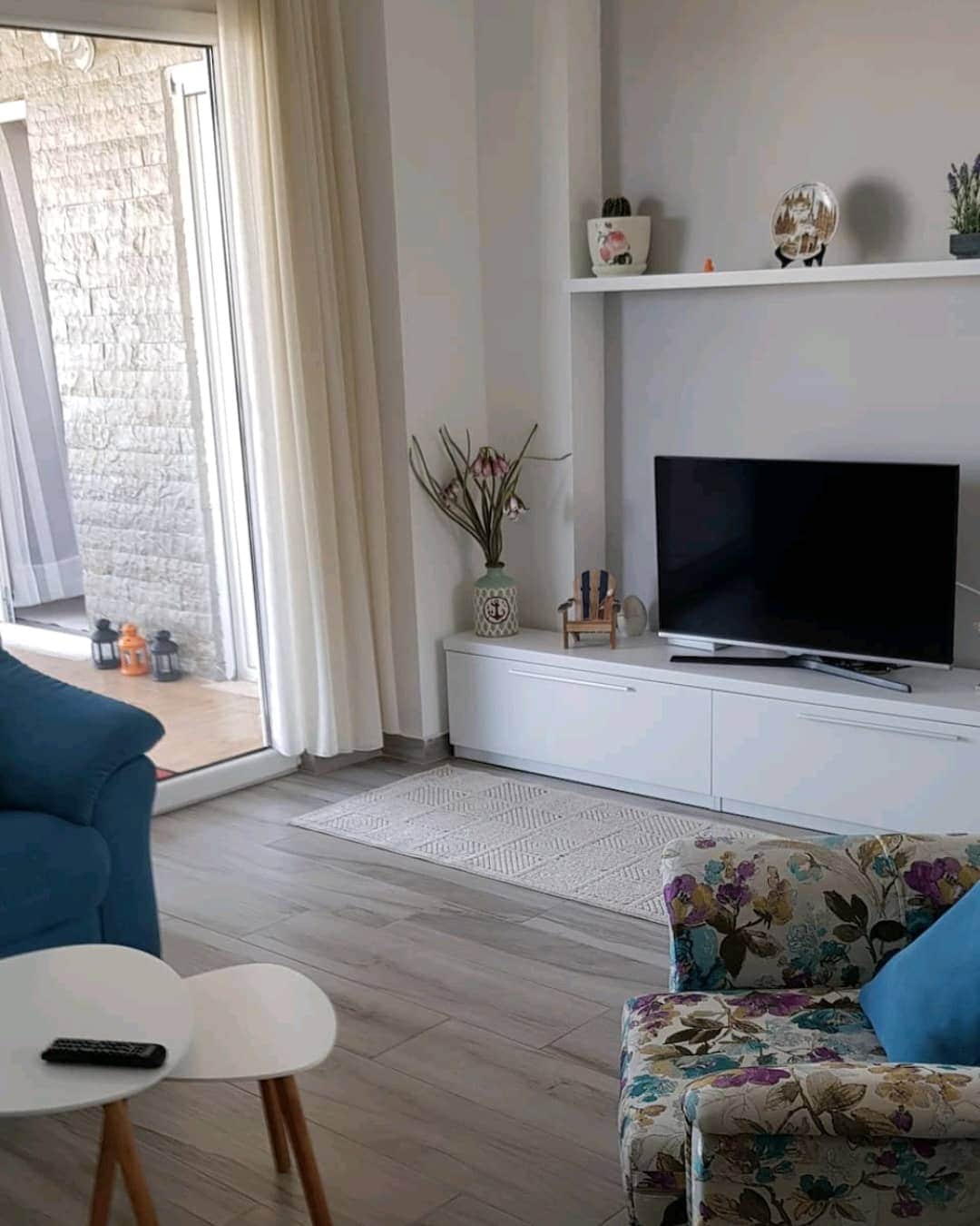 Welcome to our peaceful and family-friendly apartment 🌿 A cozy and comfortable space perfect for couples, small families or friends looking for a quiet and relaxing stay. The apartment offers a warm atmosphere where you can truly feel at home. Enjoy your coffee or tea on the balcony, surrounded by fresh air and calm vibes ☕🍃 Outside,a lovely garden full of colorful flowers creates the perfect place to relax . Clean and fully equiped this is ideal for beautiful moments with your loved ones.❤️