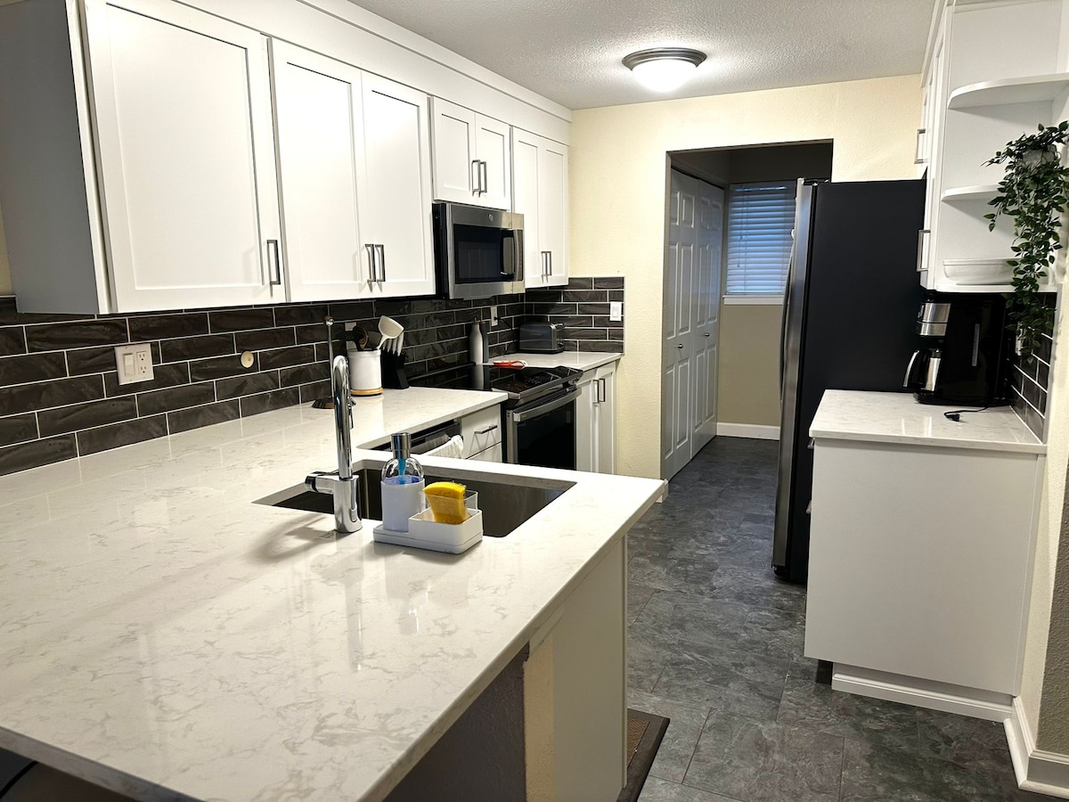 Een thuis weg van huis. Aantrekkelijk ingerichte 1-slaapkamer plus den unit, genesteld in een rustige triplex op slechts enkele blokken van alles wat Kirkland te bieden heeft. Deze woning is ruim en stijlvol met een volledig uitgeruste keuken, wasmachine en droger en inloopkast. De studeerkamer is compleet met een bureau en snelle wifi. De 55-inch smart-tv is uitgerust met Roku voor eenvoudig streamen. De slaapkamer is uitnodigend, met een kingsize bed en comfortabel beddengoed. Let op: er zijn trappen die leiden vanaf de gereserveerde parkeerplaats.