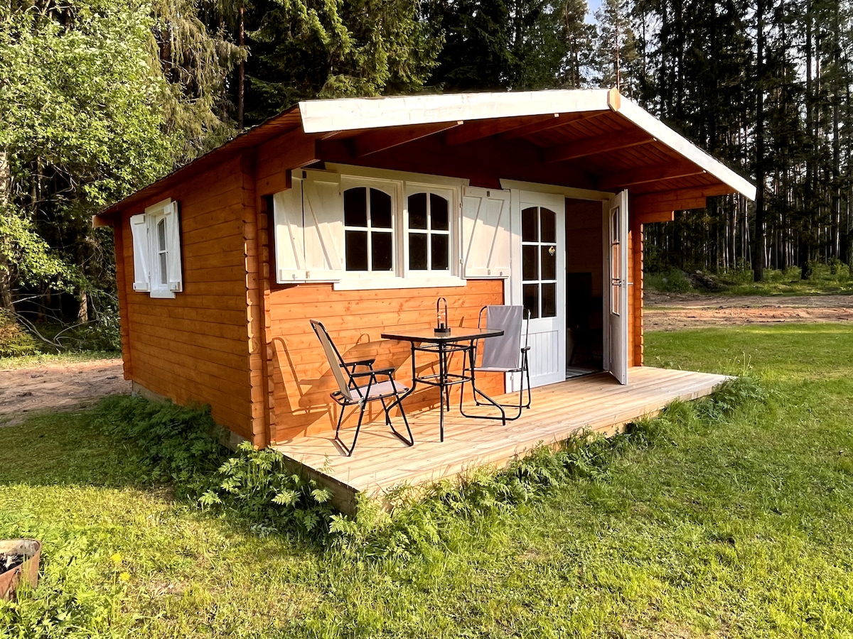 Дом с оборудованной кухней. Спальня с кроватью шириной 160 см. Телевизор, wi-fi, печь - камин. Душевая. Вода из родника. Барбекю. Финская баня по заказу. Качели для детей. Тишина. Расслабьтесь и забудьте о тревогах в тихом оазисе.