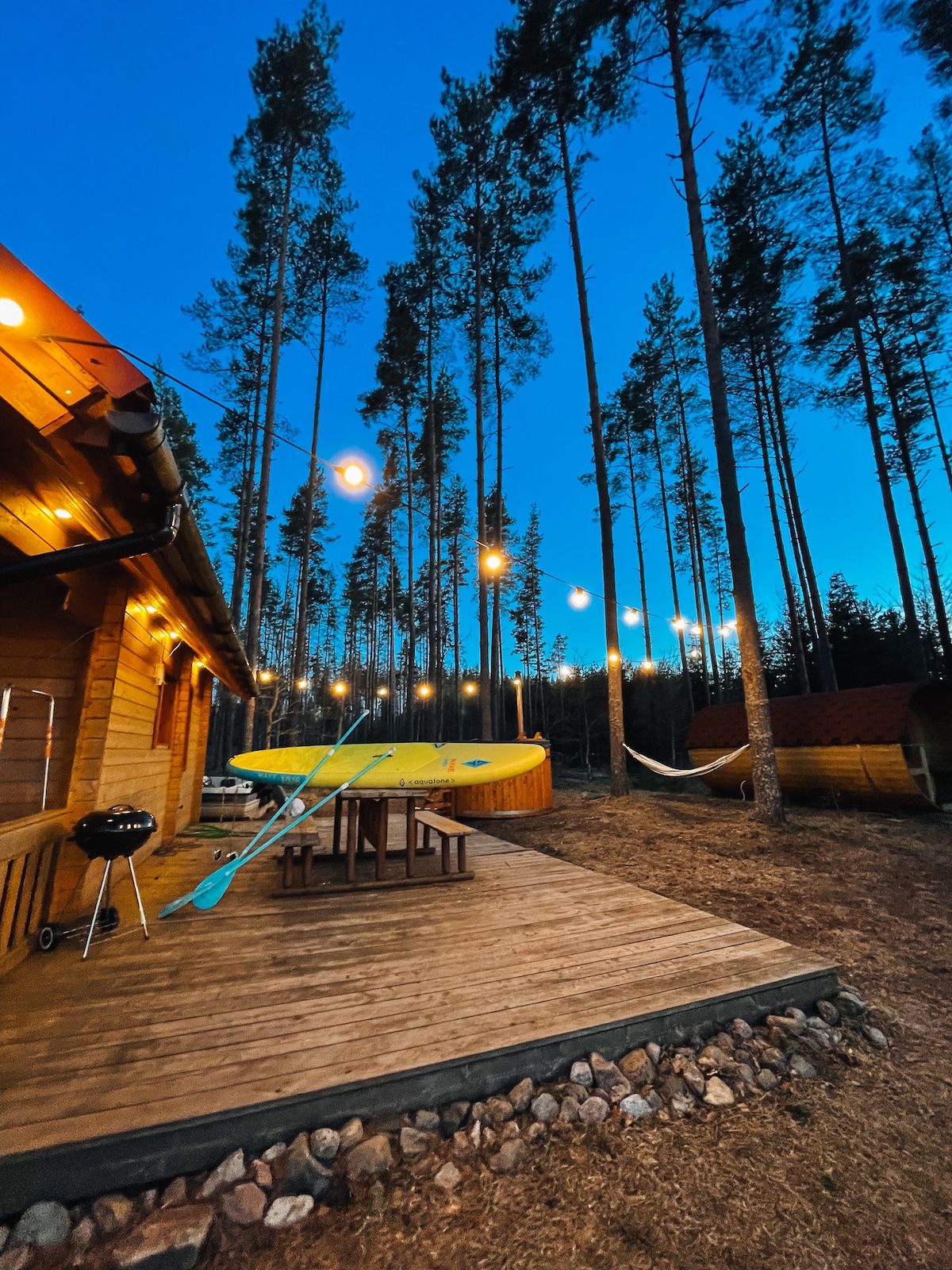Lake Escape – Your Cozy Getaway by Vagula Lake! Ontdek de essentie van echte rust en natuur in ons toevluchtsoord aan het meer, genesteld tussen de torenhoge dennen van Võru County. Onze hut biedt je een unieke ervaring waar rust en avontuur samenkomen, het creëren van de perfecte sfeer voor een romantisch uitje, hoogwaardige familietijd of rustige eenzaamheid. Geniet van een ontspannende sauna, een rustgevend bad in het bubbelbad en een verfrissende duik in het meer. Onvergetelijke ervaringen en positieve emoties wachten op iedereen!