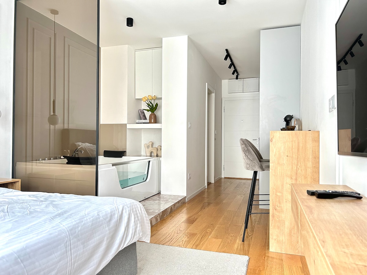 Welkom bij Crown Suite – een stijlvol, volledig uitgerust duplexappartement in het hart van Belgrado, gelegen in de prestigieuze Krunska Street. Deze charmante ruimte ligt verscholen in een rustige binnenplaats en biedt zowel rust als onovertroffen centrale toegang. Perfect voor koppels, solo-reizigers, zakelijke gasten of digitale nomaden – het appartement combineert comfort, gemak en privacy, met snelle wifi, twee tv's en een eigen terras voor je ochtendkoffie of's avonds een glas wijn.