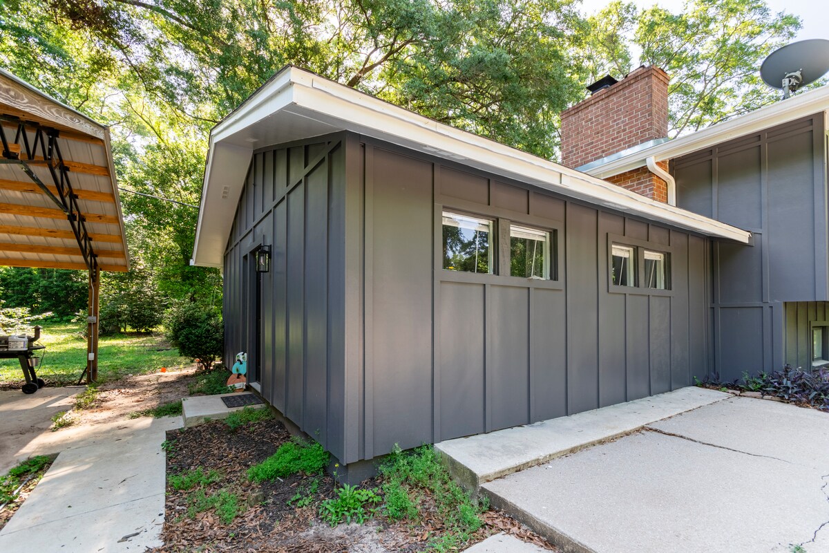 ✈️ 5 minuten van Tallahassee Airport! 🏟️ 12 minuten van Capitol, FSU, FAMU en TCC 🤪 Geen gekke uitcheckinstructies! 🐕 Huisdiervriendelijk! 🛶 Kajaks beschikbaar! Bed met 🔋afstandsbediening! 🌺Natuurpaden! ⛵️Eigen toegang tot een meer! 👩💻Reizende werkvriendelijk! 🎣Vis van het dok! 🔑 Afstandsbediening en sleutelloze toegang. ⛳️ Golfbaan op 10 min! 🚿 Inloopdouche en apart bad! 🎸 Piano, gitaar en bordspellen beschikbaar 🍳Geweldige grill ingesteld!