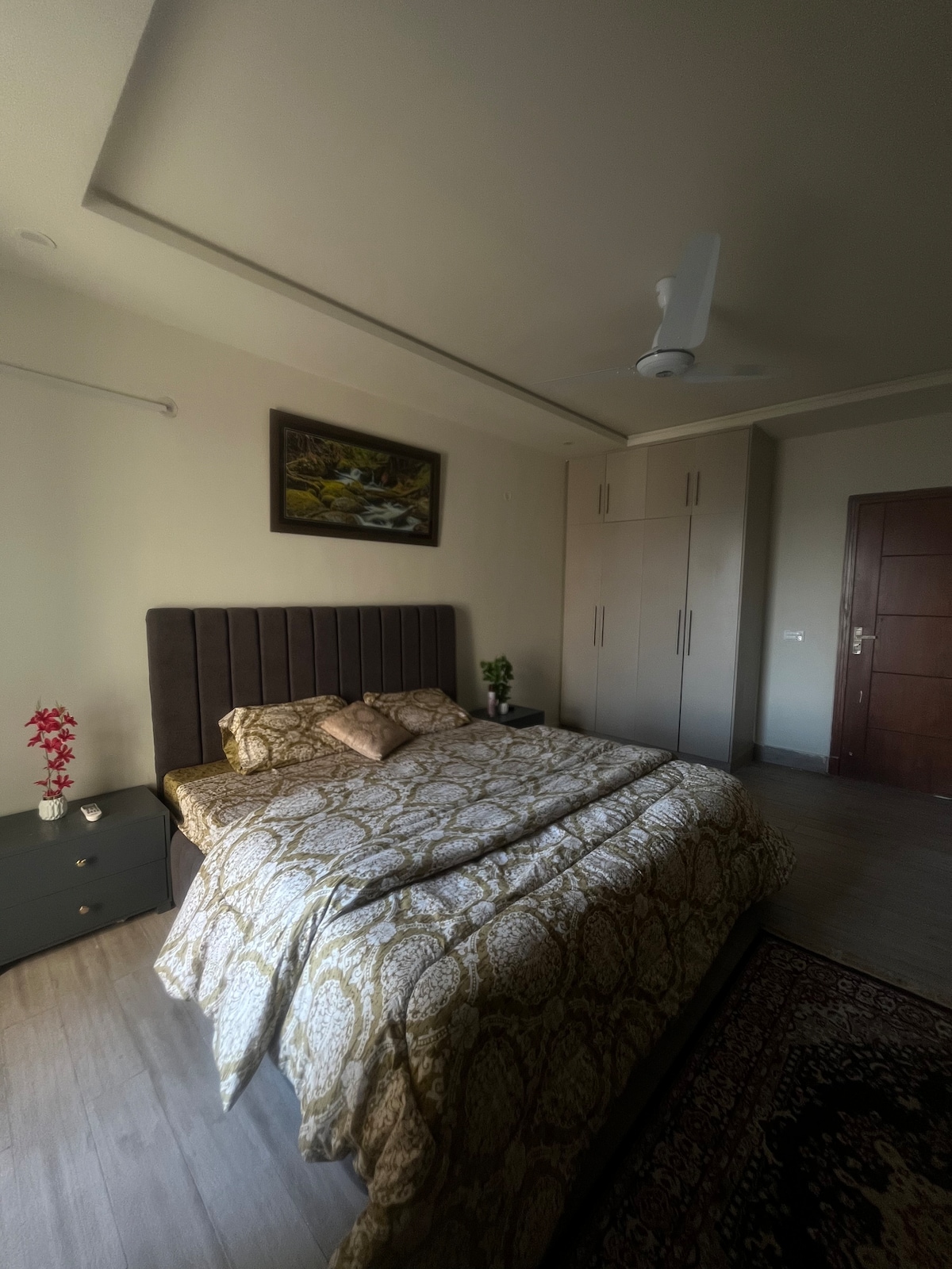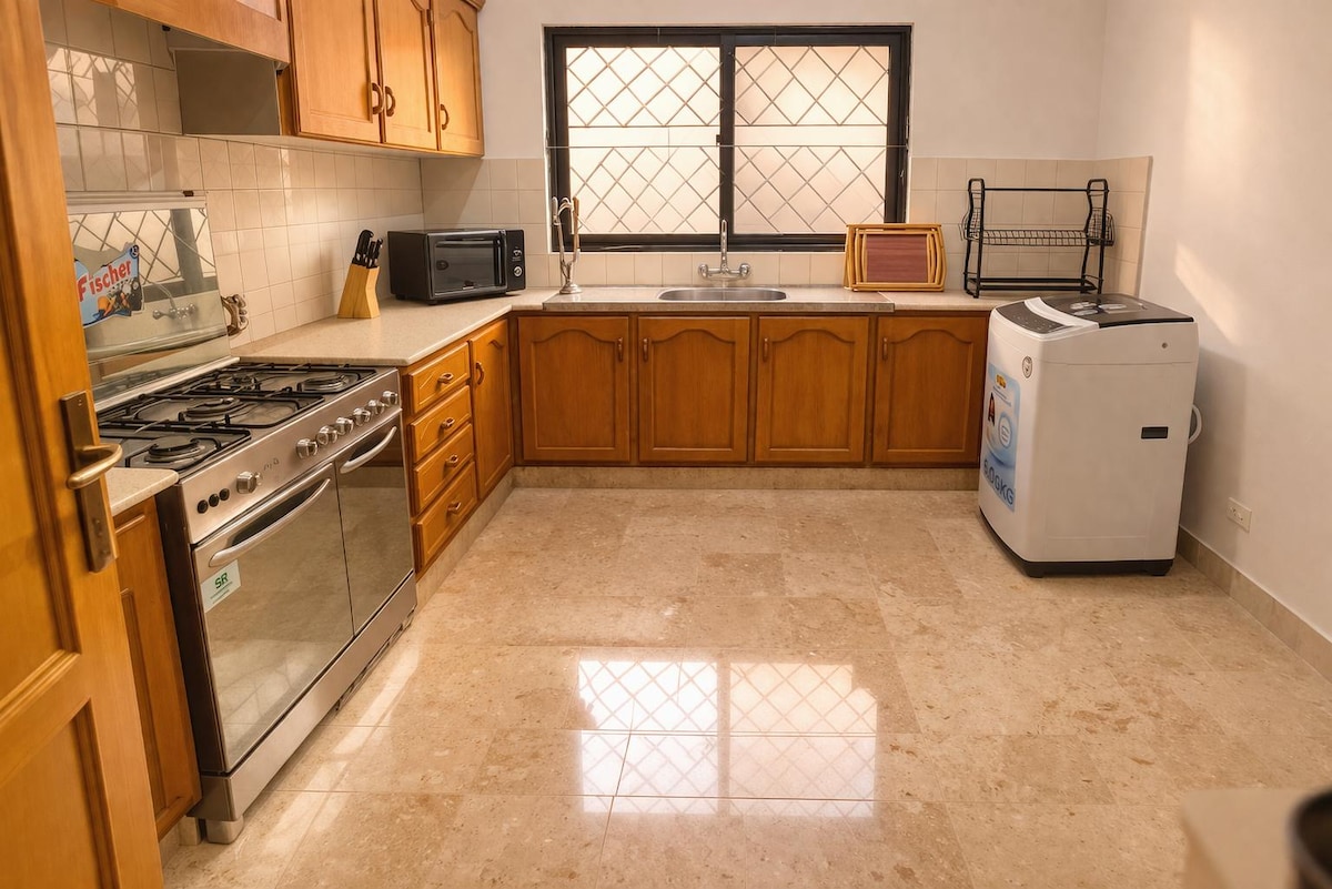 Een luxe privégedeelte op de begane grond van een huis van 12 Marla in het hart van Islamabad, met 2 kingsize slaapkamers, een gezellige tv-lounge met 55 " tv, 100 Mbps wifi, een volledig uitgeruste keuken, een eethoek, 2 badkamers, een patio, een eigen ingang en een eigen parkeerplaats. Een rustige, groene buurt - Je ideale thuis weg van huis Locatie Afstand met de auto: I-8 Markaz: 3 minuten Shifa-ziekenhuis: 4 minuten. Luchthaven: 35 min. Snelweg: 15 minuten Algemene winkels: 1 min Centaurs Mall: 10 minuten F-6: 15 minuten