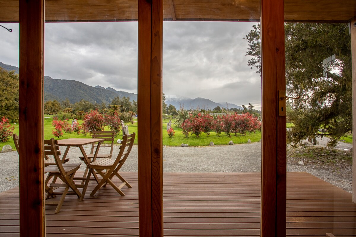 - GEEN AIRBNB-SERVICEKOSTEN voor DEZE ADVERTENTIE - Welkom in Glacier Country! Ons gezellige huisje in de paddocks ligt in het hart van het Nationaal Park Tai Poutini Westland en op slechts 7 minuten rijden van het stadje Franz Josef. Het biedt een prachtig uitzicht op de zuidelijke Alpen en ruime privacy in een landelijke omgeving. Ontspan na een leuke dag wandelen en sightseeing onder het genot van onze spectaculaire zonsondergangen aan de westkust, luisteren naar de inheemse vogels, staren naar de sterren op het dek of gewoon ondergedompeld worden in de regen.
