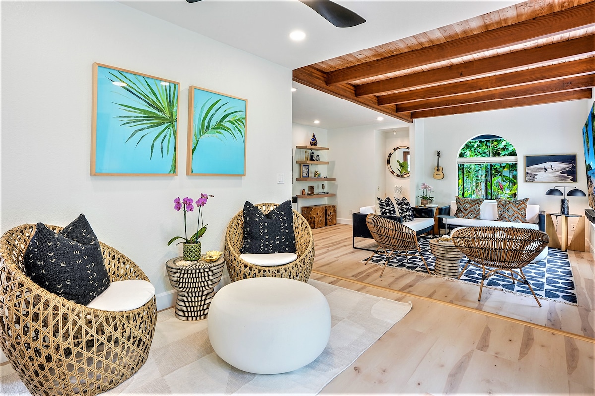 A modern surf oasis nestled on an overlook with panoramic ocean views, stunning sunsets, and the famous Bali Hai. We are featured in the June issue Sunset Magazine. You'll never want to leave this modern Hawaiian styled 2 bedroom, 2 bath condo. We have everything you’ll need and want for the most relaxing stay of your island vacation and only steps away from food, drinks, the pool and the beach. Whale watch from the lana'i in the winter, or snorkel our beautiful Hideaways beach in the summer.