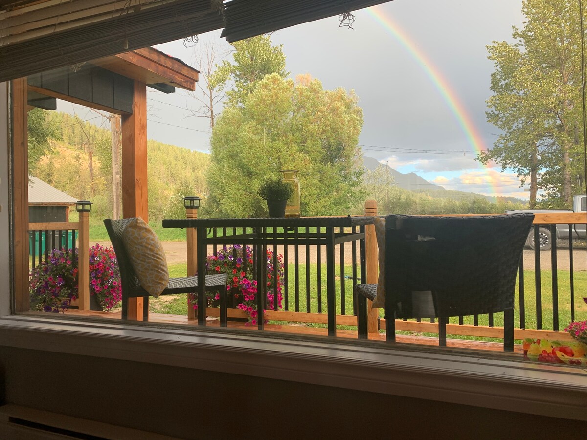 Onlangs gerenoveerd huis op slechts enkele minuten van de stad Golden, op enkele minuten van de ski-heuvel, fietspaden, supermarkten, coffeeshops en wandelpaden. Perfect vakantiehuis voor een stel of een romantisch uitje! Onze suite is onderdeel van een duplex, dus er is een unit naast je die ook op airbnb staat. Er zijn helemaal geen gedeelde ruimtes, de ruimte is volledig prive. Vanuit elk raam kunt u genieten van een prachtig uitzicht op de bergen en genieten van ontspannen met een glas wijn vanaf het grote terras.