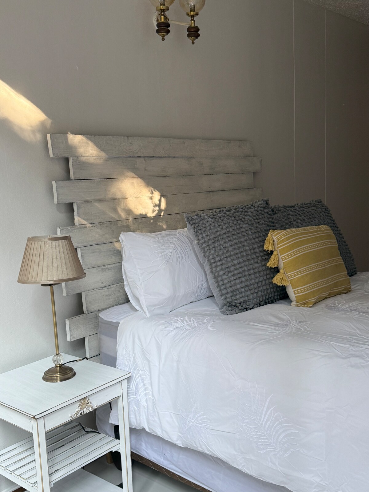 Dit lichte appartement is volledig privé met een eigen ingang, gescheiden van het hoofdhuis - perfect voor rust en stilte. Binnen vind je een gezellige slaapkamer met een eigen badkamer, plus een ruime woonkamer met een eethoek en een kitchenette voor jouw gemak. Het appartement wordt aangedreven door zonne-energie en een zonne-geiser, zodat je kunt genieten van een comfortabel verblijf zonder het gedoe van stroomuitval. We delen ons huis met twee honden en een kat, vriendelijke huisdieren die van mensen houden