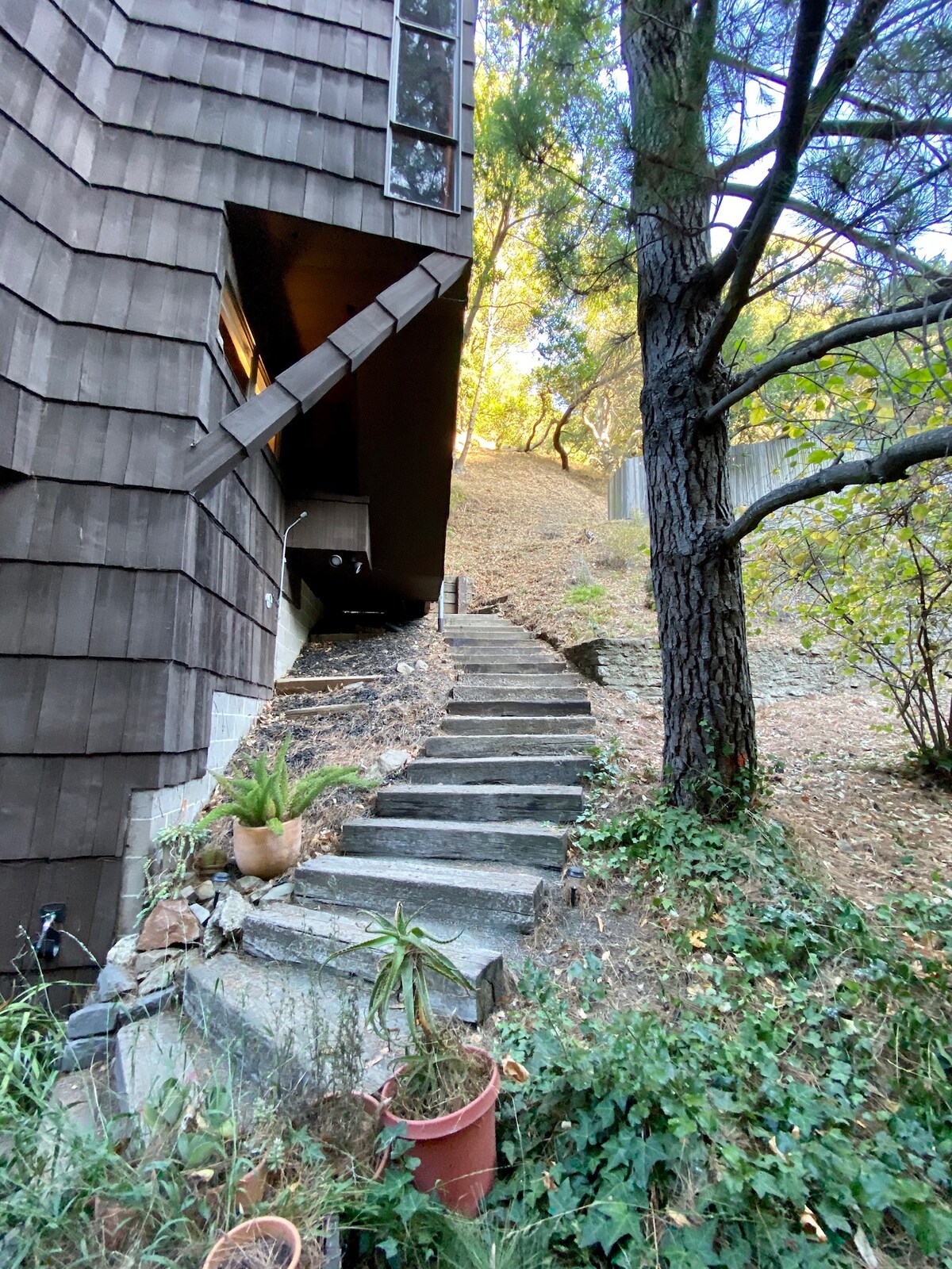 Een open concept, een woning met één slaapkamer en twee verdiepingen in University Uplands. Aangenaam verscholen in Claremont Canyon. Deze woning is gebouwd in 1969 en behoorde tot de gerenommeerde architectonische historicus Spiro Kostof. Het is een rustige ruimte verscholen tegen de heuvel, omgeven door de natuur. Je zult het gevoel hebben dat je op het platteland verblijft, terwijl je in feite slechts 5 minuten verwijderd bent van UC Berkeley en BART, met gemakkelijke toegang tot San Francisco.