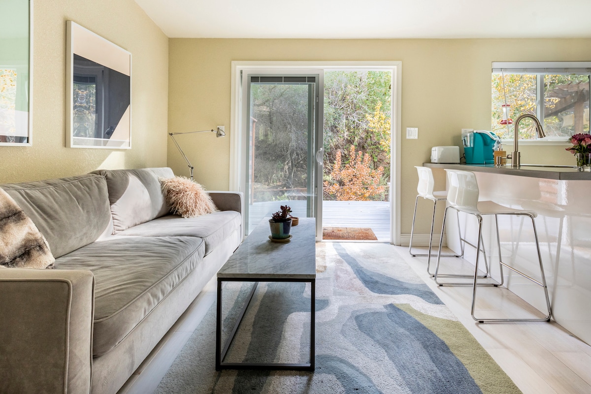 Vind rust en eenzaamheid aan de overkant van de Golden Gate Bridge. Gelegen aan de voet van Mt. Tamalpais en op slechts enkele minuten van het centrum van San Anselmo en Fairfax, is deze charmante studio de perfecte plek om te ontspannen voor zowel reizigers, kunstenaars als liefhebbers van het buitenleven. Ideaal om op afstand te werken of om alle wandel- en fietsavonturen te verkennen die Marin te bieden heeft, is dit de perfecte bestemming om te ontsnappen en de stekker uit het stopcontact te halen. Neem contact met me op als je datums niet beschikbaar zijn in onze kalender!