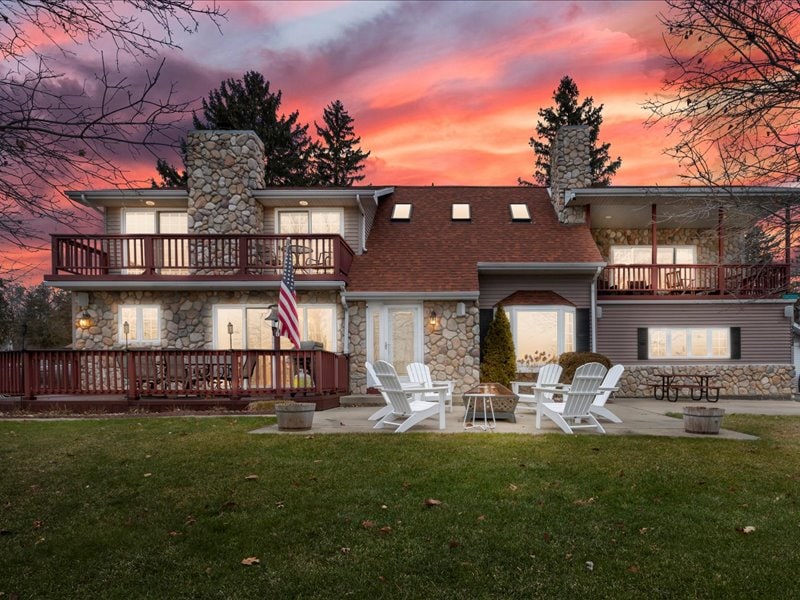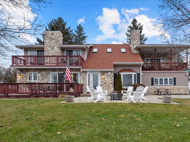Perfectly positioned on the shores of Lake Como, this spacious lakefront cabin sits just steps from the beach, playground, restaurants & picnic areas - the most ideal location to enjoy all that the area has to offer. Inside, experience an inviting blend of eclectic character & modern upgrades, creating a fun yet elevated vacation atmosphere. Enjoy the additional driveway for watercraft, take in views from the balconies, & experience lakefront gatherings year-round; this is Lake Life Living.