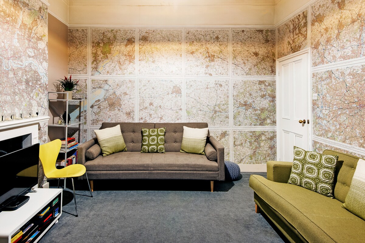 Verken Londen en verder vanuit het comfort van de supergrote bank via de kaarten die de muren van dit stijlvol ingerichte Victoriaanse appartement sieren. Hier heeft zelfs het behang een echte wow-factor, terwijl de snoepbar sappige zoete lekkernijen biedt. De foto 's zijn professioneel genomen door een Airbnb-fotograaf. Houd er rekening mee dat hij een groothoeklens heeft gebruikt, dus ik heb hieronder details over de exacte afmetingen van de kamer toegevoegd. De flat is in Victoriaans rijtjeshuis, dus er zijn mooie hoge plafonds en de kamers zijn gemiddeld groot naar Londense normen! De doucheruimte is bijoux en hoewel het alles heeft wat je nodig hebt, is het niet ruim! De woonkamer is 4 m x 4,5 m. Ingericht met de kaarten van de verordening van Londen en de omgeving. Het heeft een bank met 3 zitplaatsen en een slaapbank, een eettafel en 8 eetkamerstoelen (waarvan 1 in de achterslaapkamer), tv met ingebouwde dvd-speler en een selectie dvd 's, boeken en games. Voorste slaapkamer is 3,7 m x 3,2 m Het zwarte en bloemrijke behang is van Christian Lacroix en er is een donkergrijs gestoffeerd 'slee' tweepersoonsbed, trommel nachtkastjes met tafellampen, een spiegelkast met hangruimte en uitschuifbare laden. De middelste slaapkamer is 2,8 m x 2,75 Achterslaapkamer is 2,85m x 3,95 Je kunt gebruikmaken van de gehele flat om te gebruiken als je thuis ver van huis. Het heeft een nieuw ingerichte keuken met keramische elektrische kookplaat en oven, vaatwasser, koelkast met vriesvak en wasmachine/droger. Het werkblad is wit kwarts en er is een onderbouw koperen gootsteen en mixer kraan en veel kastruimte.De keuken is volledig uitgerust met glazen, bestek, servies, pannen en kookgerei. Er is een Bosch waterkoker en broodrooster en koperen cafetière. Er is een doucheruimte met inloopdouche, wastafel en toilet. NB. er is geen bad. Omdat er geen BAD is, heb ik gezegd dat het niet geschikt is voor baby 's 0-2, maar als je hier geen last van hebt, vind ik het prima als je je baby' s meeneemt! Er is een strijkijzer en strijkplank in de achterslaapkamer met het vossenhandschoenbehang. Het strijkijzer ligt in de kleerkast. De strijkplank is verscholen achter de kledingkast. Gebruik het strijkijzer NIET op het tapijt. Sms of bel me en ik zal zo snel mogelijk reageren Leytonstone is een buurt echt in de buurt. De geboorteplaats van filmregisseur Alfred Hitchcock, het metrostation beschikt over mozaïeken van scènes uit zijn films. Geweldige lokale eetgelegenheden zijn The Red Lion, The Birds en The Heathcote & Star. De flat ligt op slechts 5 minuten lopen van het metrostation Leytonstone op de centrale lijn. Liverpool Street op slechts 5 haltes, op circa 10 minuten. Tottenham Court Rd en Oxford Circus op 25/30 minuten afstand. Dit is ook slechts 2 haltes van Stratford als u het Queen Elizabeth Olympic Park wilt bezoeken, of het enorme winkelcentrum Westfield met veel winkels, restaurants en een bioscoop. Er is ook een bioscoop in Stratford en het beroemde Theatre Royal Stratford East. Er is een eigen off-road parkeerplaats beschikbaar aan de achterkant van het pand als je het nodig hebt. Laat het maar weten.