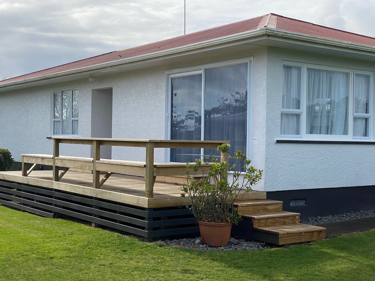 Gelegen in het midden van Taranaki 's surf sneeuw- en visgebied. Deze locatie aan zee (rotsachtige vooroever) is het dichtstbijzijnde dat je wakker wordt met afgelegen surfen, vissen of trampen of een 5 minuten durende reis naar wereldberoemde locaties maakt. Je zult genieten van mijn plek omdat het een gloednieuw, speciaal gebouwd vakantiestrandhuis is. Uitzicht op de berg Taranaki aan de ene kant en de oceaan aan de andere kant in een afgelegen landelijke omgeving . Ochtend tot middagzon met houtkachel en warmtepomp voor de koude dagen. Huisdieren zijn welkom.
