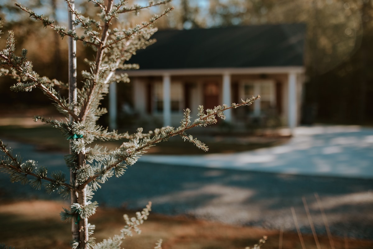 Come enjoy the stillness and silence of our beautiful proeperty. You will love the deep porches with the rocking chairs and porch swing. Enjoy a beautiful sunset, play a game of cornhole, or build a fire in the firepit in the large common area. The Redwood has an open floor plan with lots of natural light. You will love the luxury walk-in shower with multiple shower heads. Then rest comfortably in the queen size bed with luxury linens.